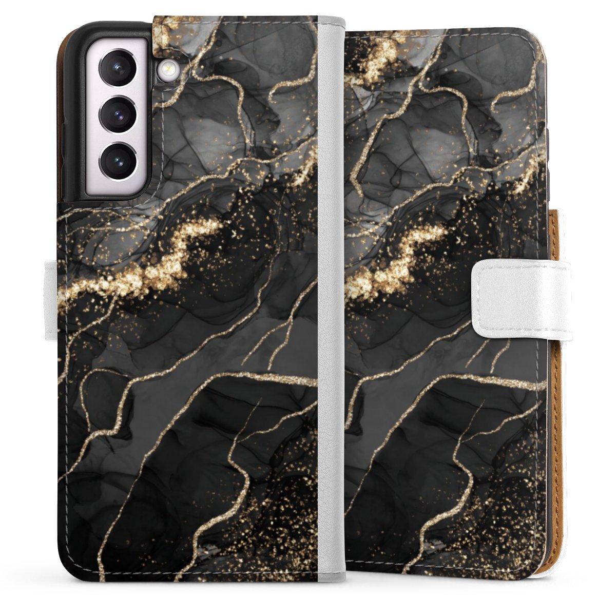 For our Sideflip Case we are using our advanced direct printing technology. The back and frontside are fully printabale, the inside of the phone bag is left unprinted. You can order the phone case without print, printed completely or also with a partial print.
