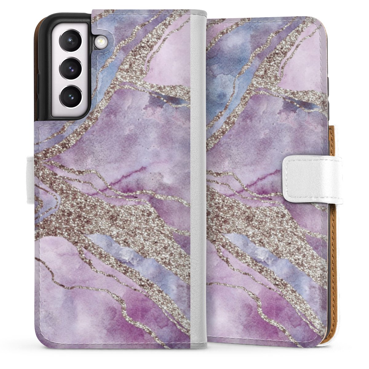 For our Sideflip Case we are using our advanced direct printing technology. The back and frontside are fully printabale, the inside of the phone bag is left unprinted. You can order the phone case without print, printed completely or also with a partial print.