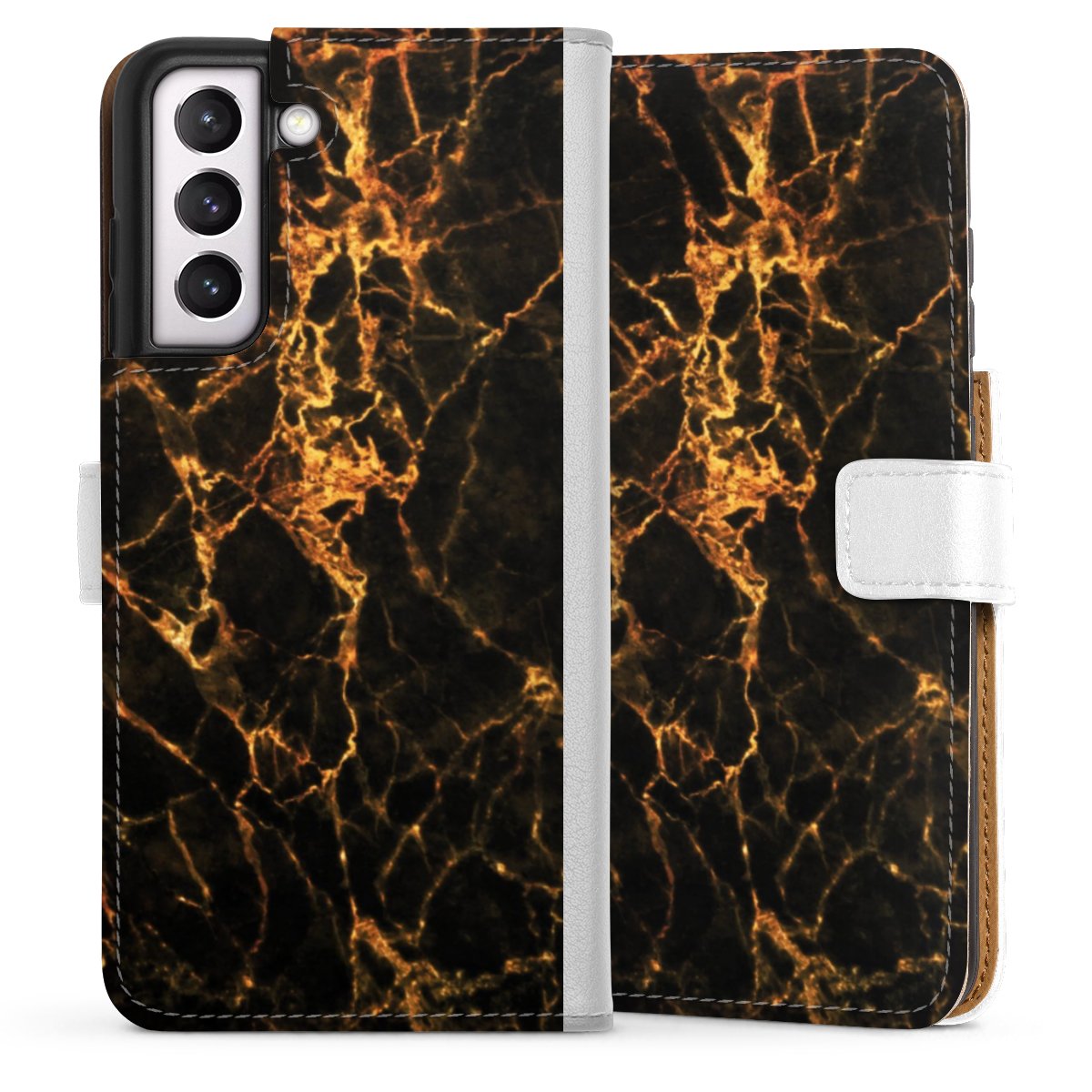 For our Sideflip Case we are using our advanced direct printing technology. The back and frontside are fully printabale, the inside of the phone bag is left unprinted. You can order the phone case without print, printed completely or also with a partial print.