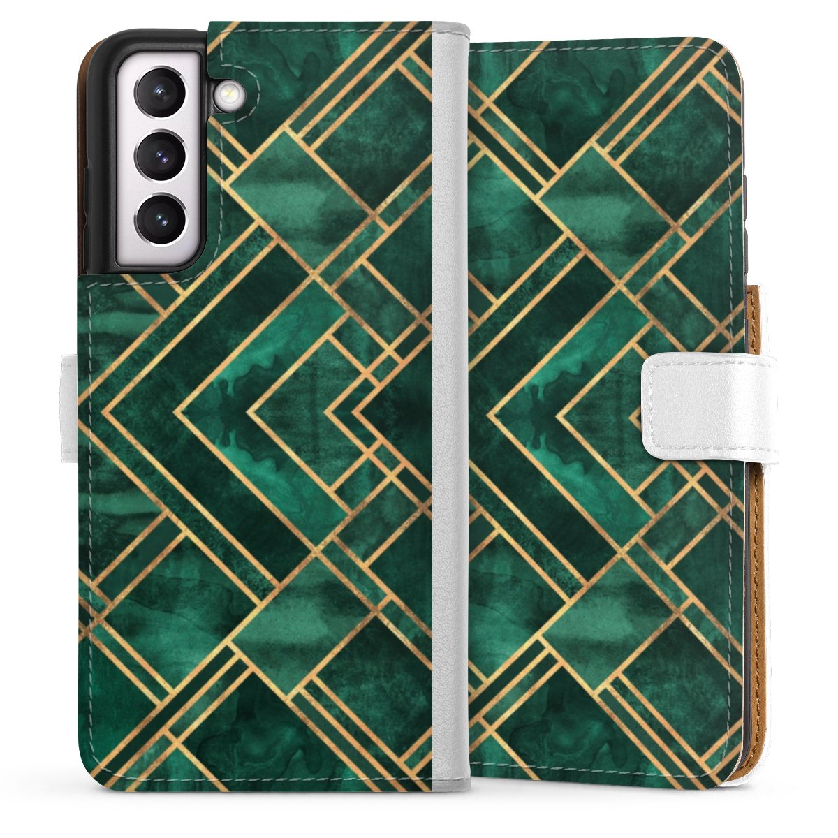 For our Sideflip Case we are using our advanced direct printing technology. The back and frontside are fully printabale, the inside of the phone bag is left unprinted. You can order the phone case without print, printed completely or also with a partial print.