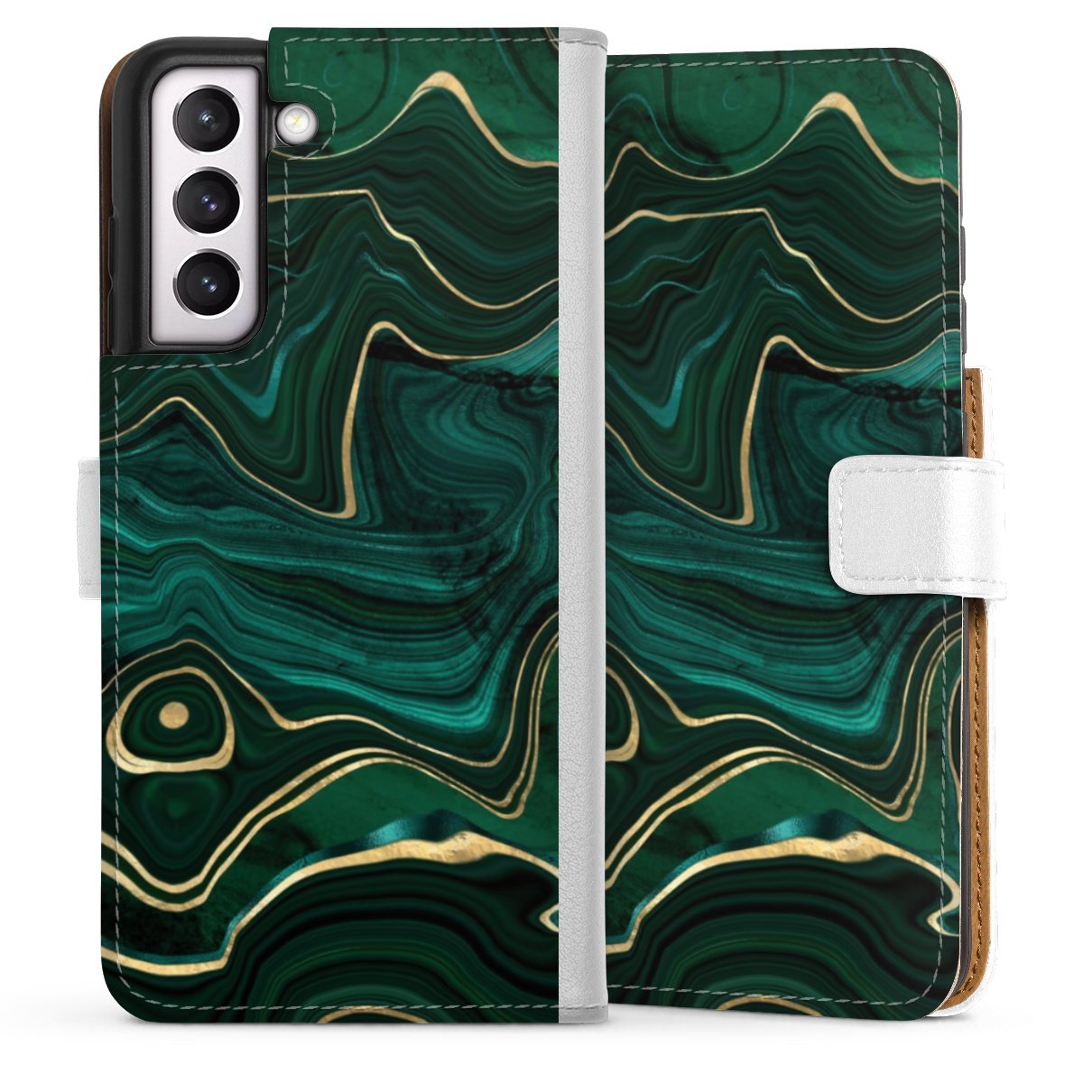For our Sideflip Case we are using our advanced direct printing technology. The back and frontside are fully printabale, the inside of the phone bag is left unprinted. You can order the phone case without print, printed completely or also with a partial print.