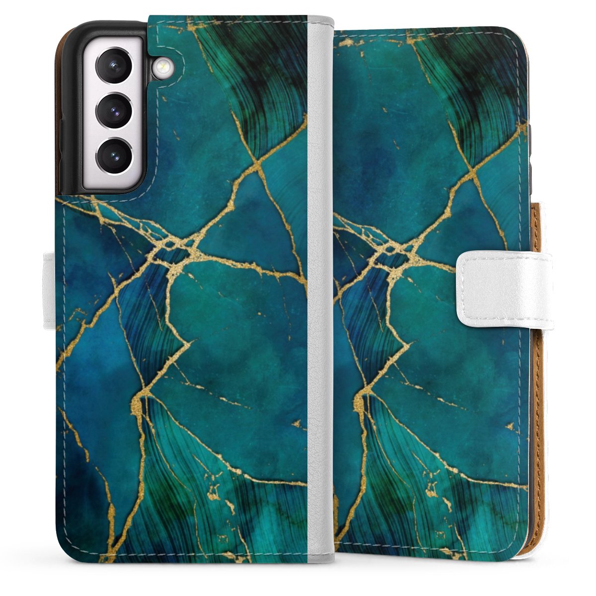 For our Sideflip Case we are using our advanced direct printing technology. The back and frontside are fully printabale, the inside of the phone bag is left unprinted. You can order the phone case without print, printed completely or also with a partial print.