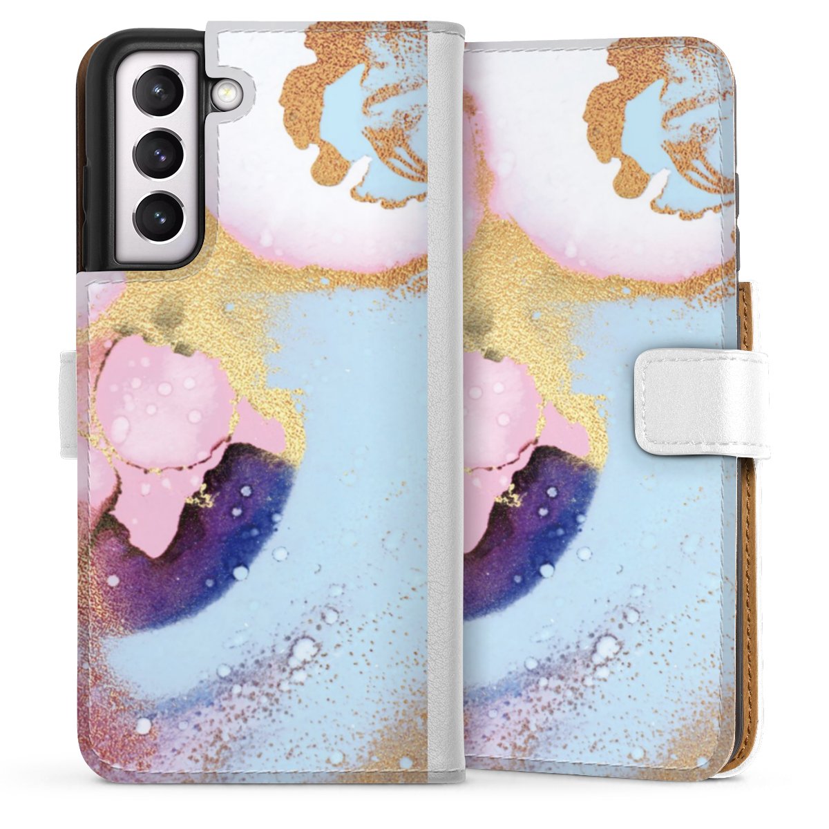 For our Sideflip Case we are using our advanced direct printing technology. The back and frontside are fully printabale, the inside of the phone bag is left unprinted. You can order the phone case without print, printed completely or also with a partial print.