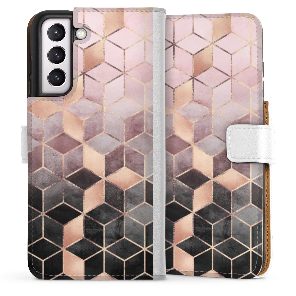 For our Sideflip Case we are using our advanced direct printing technology. The back and frontside are fully printabale, the inside of the phone bag is left unprinted. You can order the phone case without print, printed completely or also with a partial print.