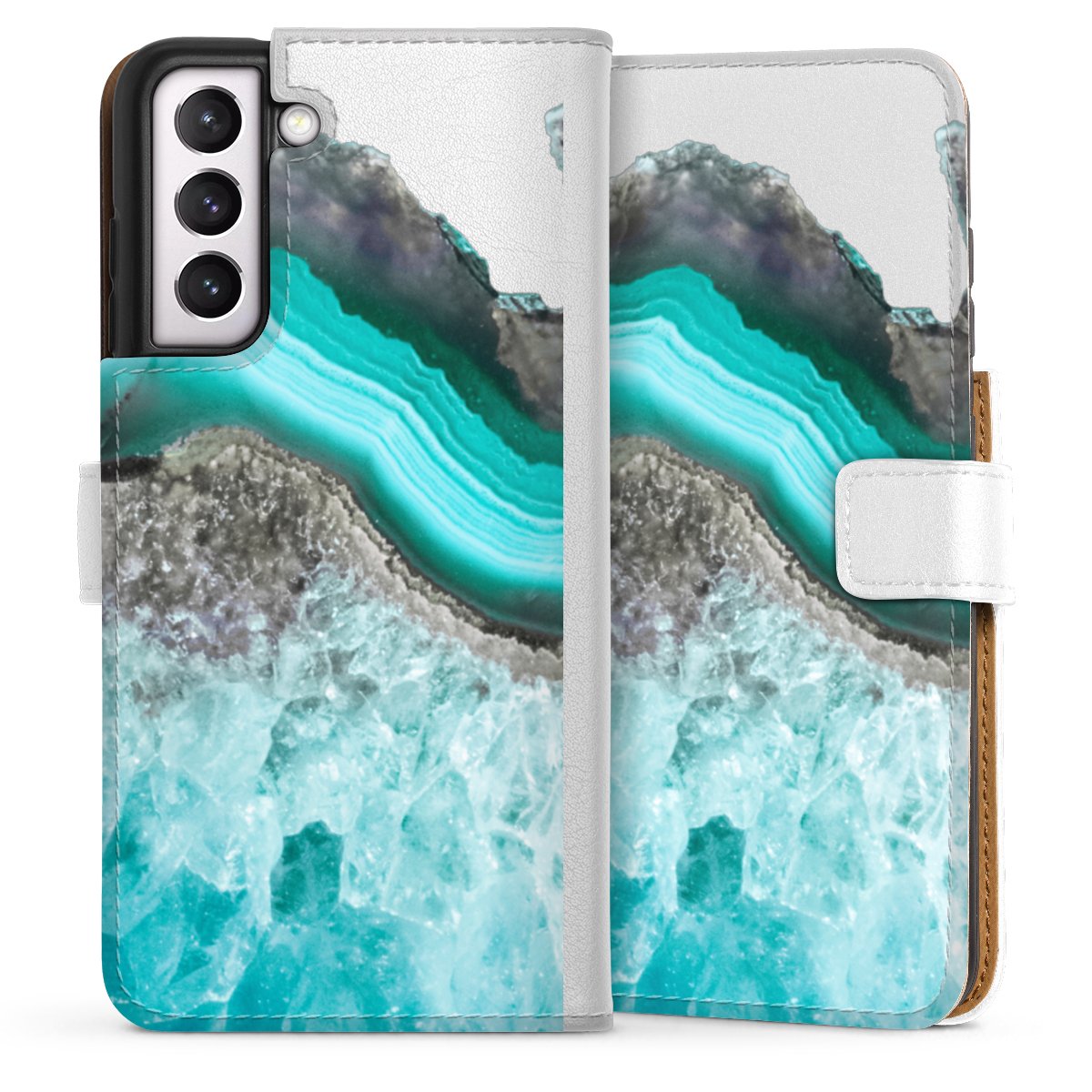 For our Sideflip Case we are using our advanced direct printing technology. The back and frontside are fully printabale, the inside of the phone bag is left unprinted. You can order the phone case without print, printed completely or also with a partial print.
