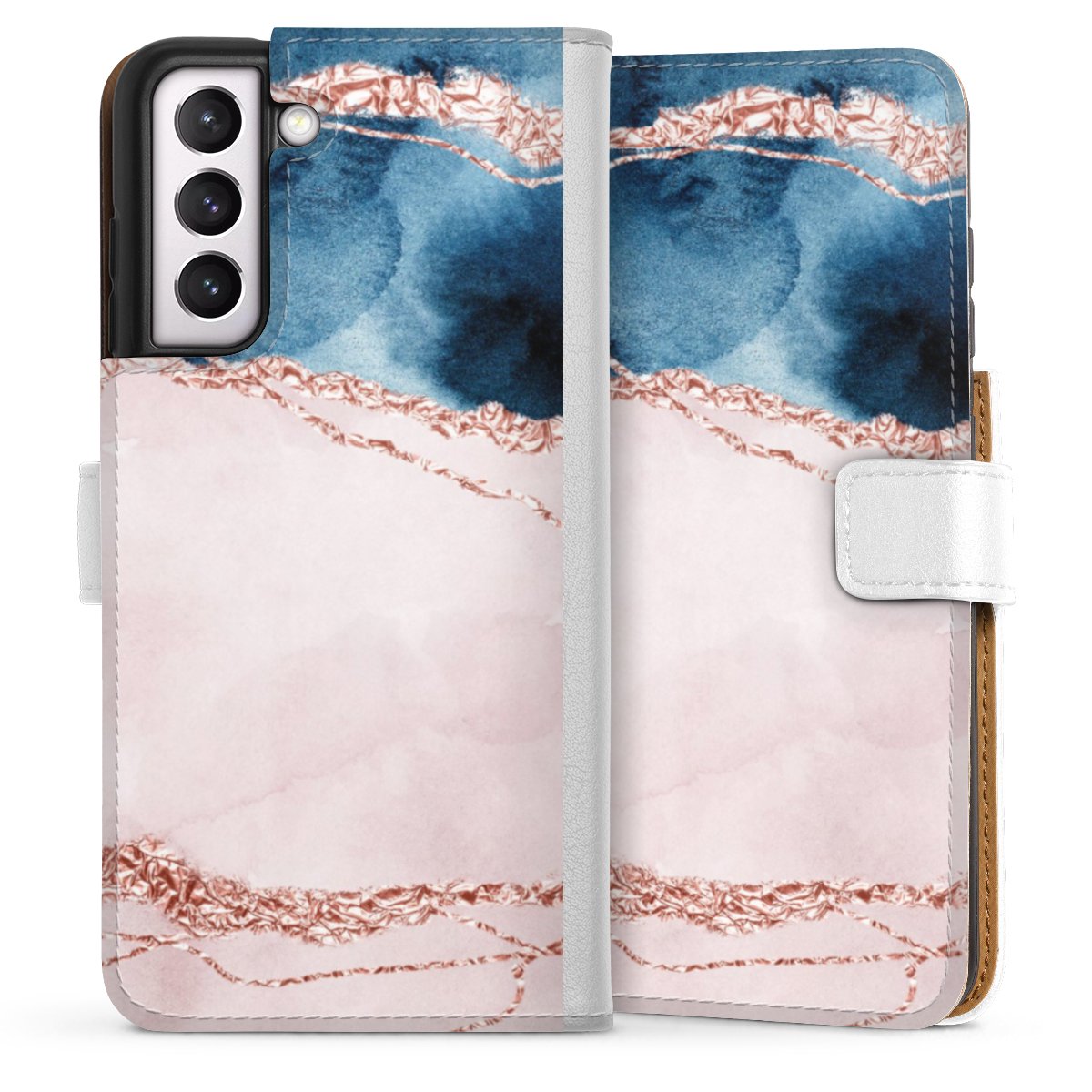 For our Sideflip Case we are using our advanced direct printing technology. The back and frontside are fully printabale, the inside of the phone bag is left unprinted. You can order the phone case without print, printed completely or also with a partial print.