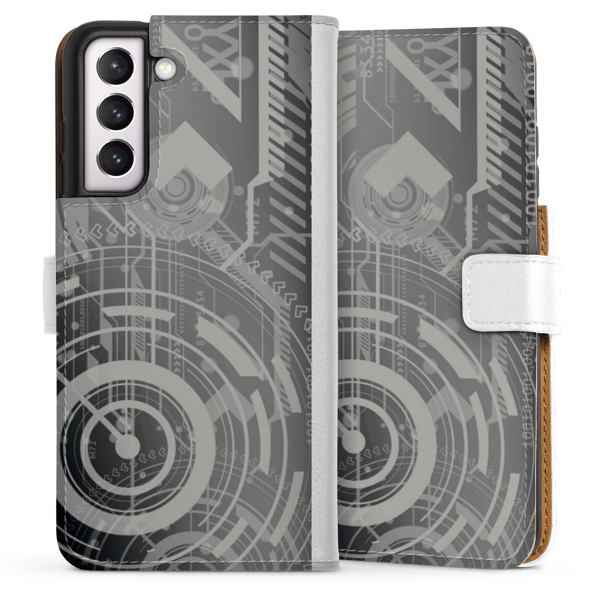 For our Sideflip Case we are using our advanced direct printing technology. The back and frontside are fully printabale, the inside of the phone bag is left unprinted. You can order the phone case without print, printed completely or also with a partial print.