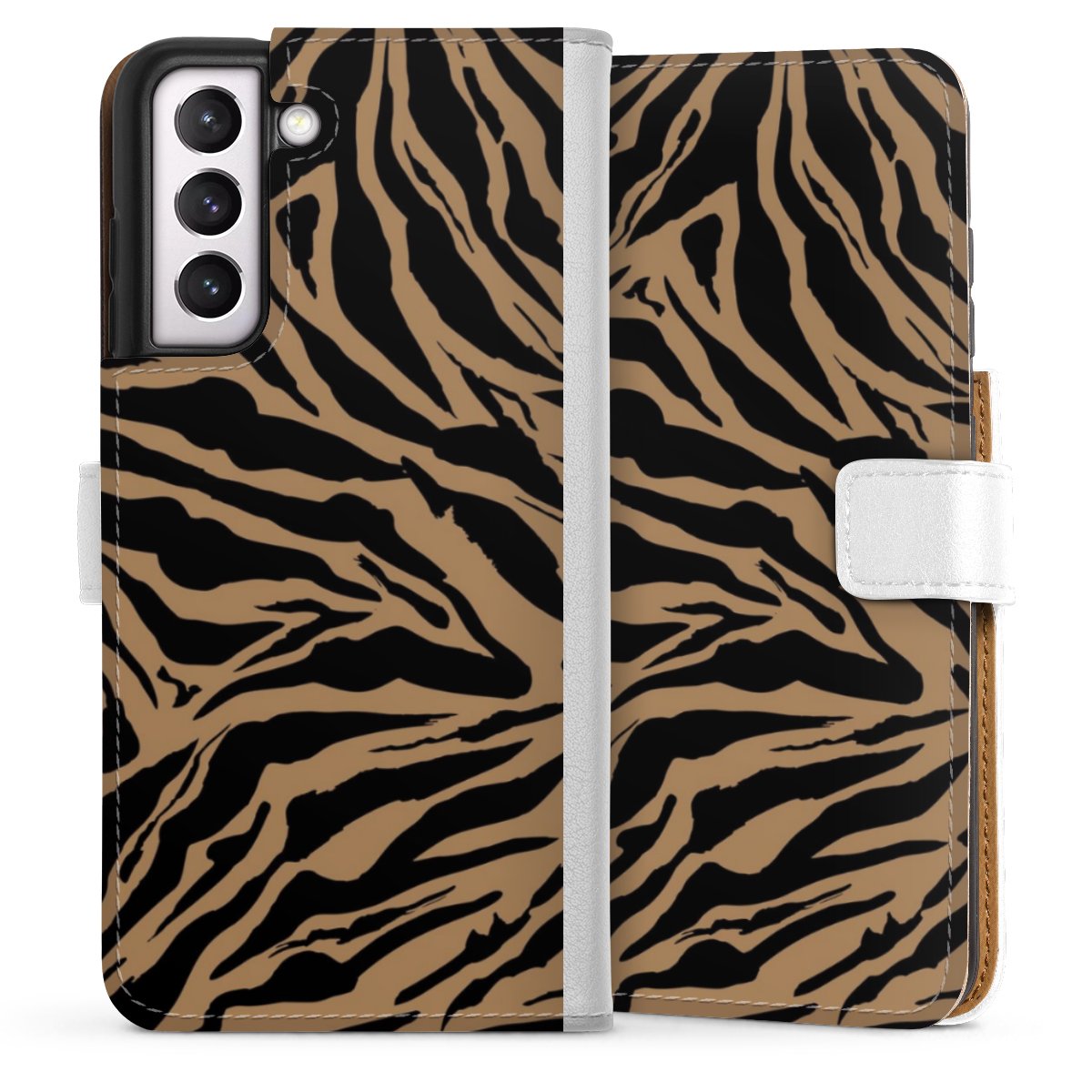 For our Sideflip Case we are using our advanced direct printing technology. The back and frontside are fully printabale, the inside of the phone bag is left unprinted. You can order the phone case without print, printed completely or also with a partial print.