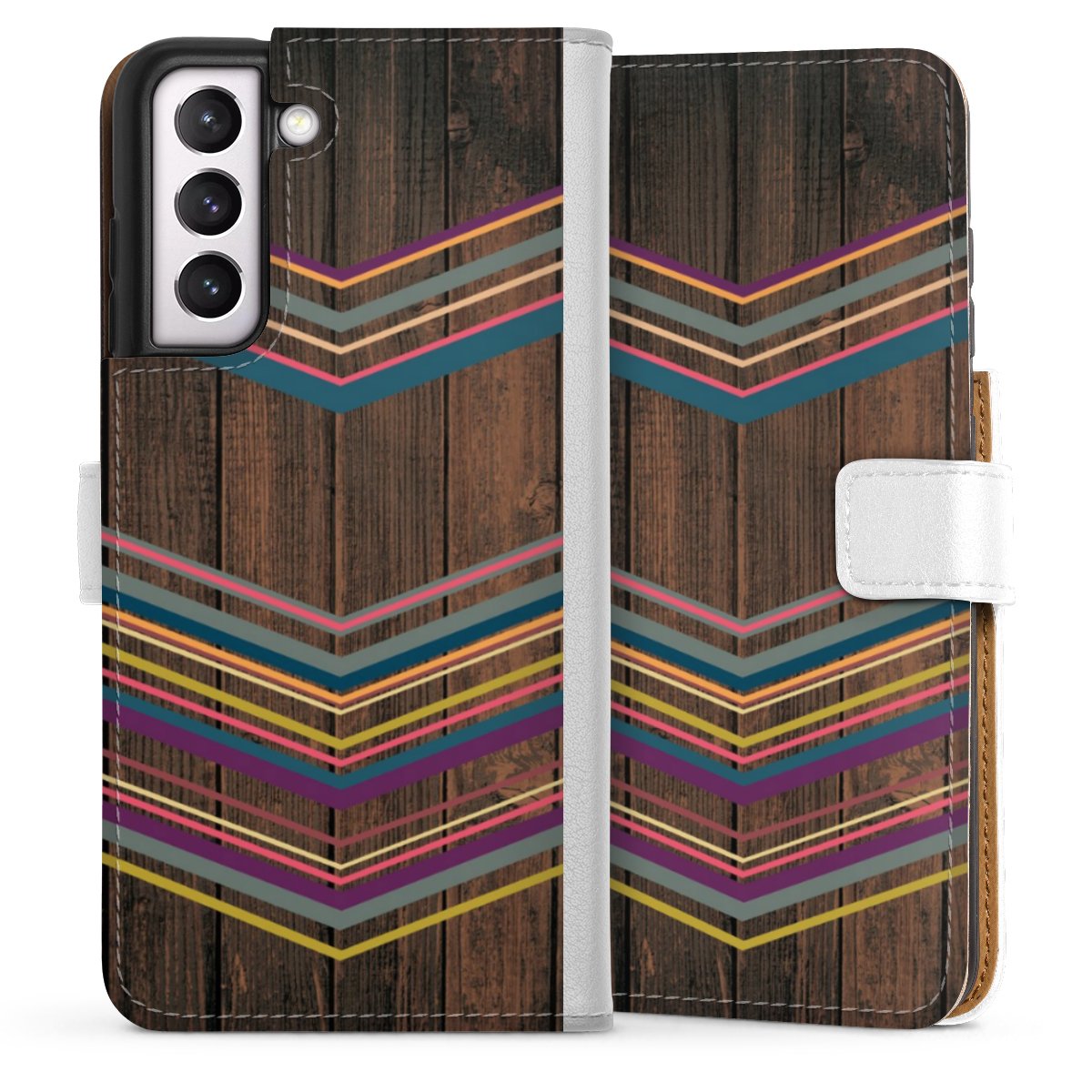 For our Sideflip Case we are using our advanced direct printing technology. The back and frontside are fully printabale, the inside of the phone bag is left unprinted. You can order the phone case without print, printed completely or also with a partial print.