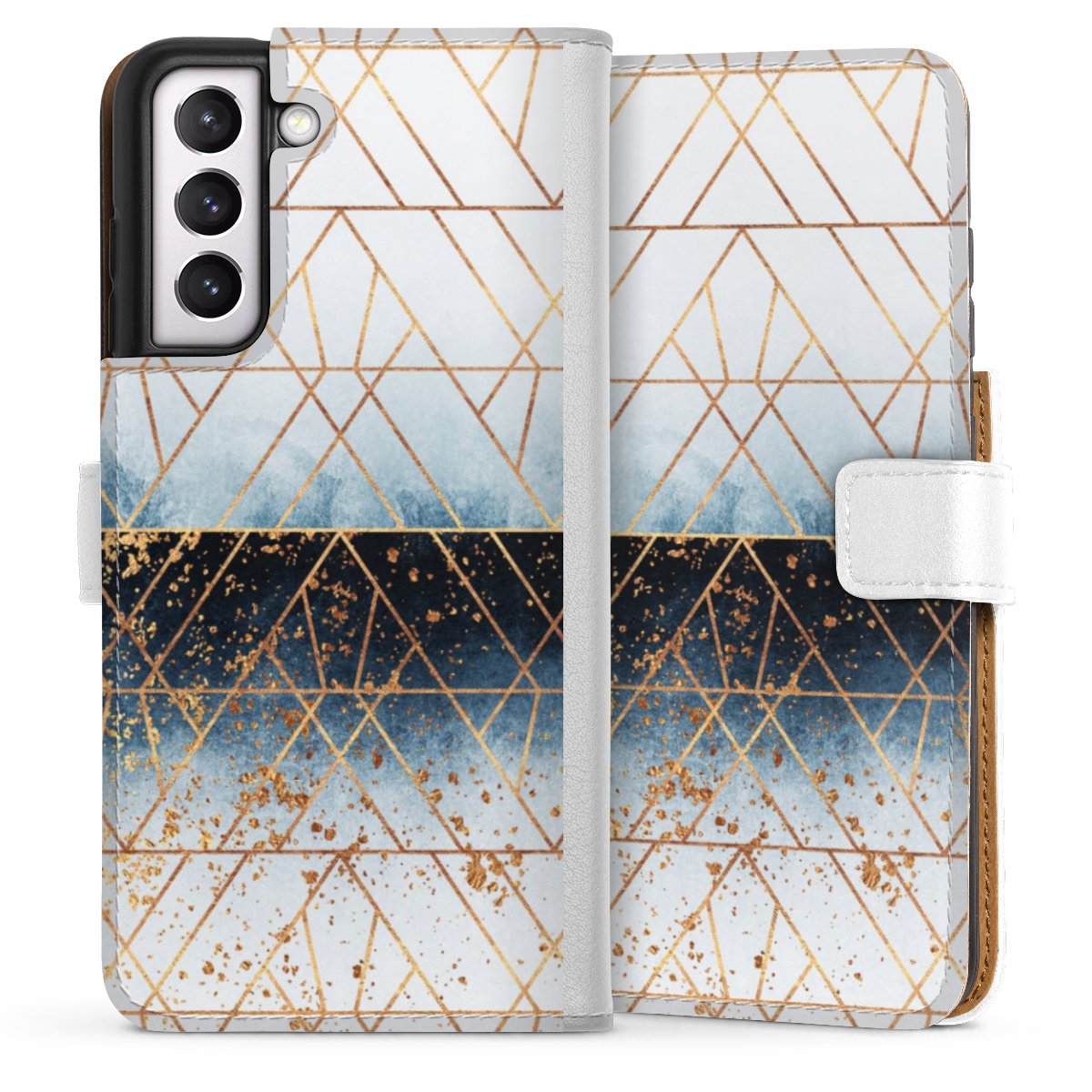 For our Sideflip Case we are using our advanced direct printing technology. The back and frontside are fully printabale, the inside of the phone bag is left unprinted. You can order the phone case without print, printed completely or also with a partial print.