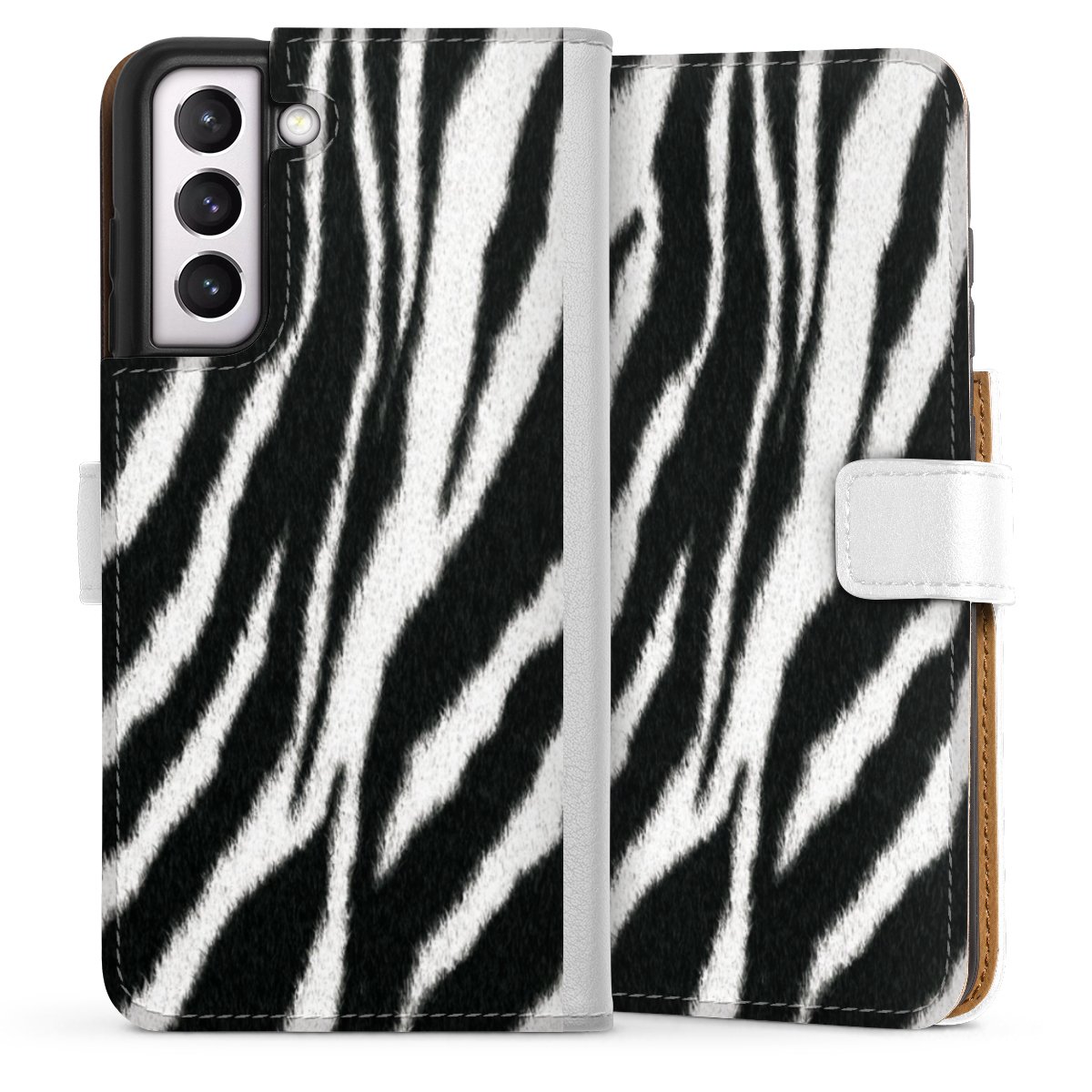 For our Sideflip Case we are using our advanced direct printing technology. The back and frontside are fully printabale, the inside of the phone bag is left unprinted. You can order the phone case without print, printed completely or also with a partial print.
