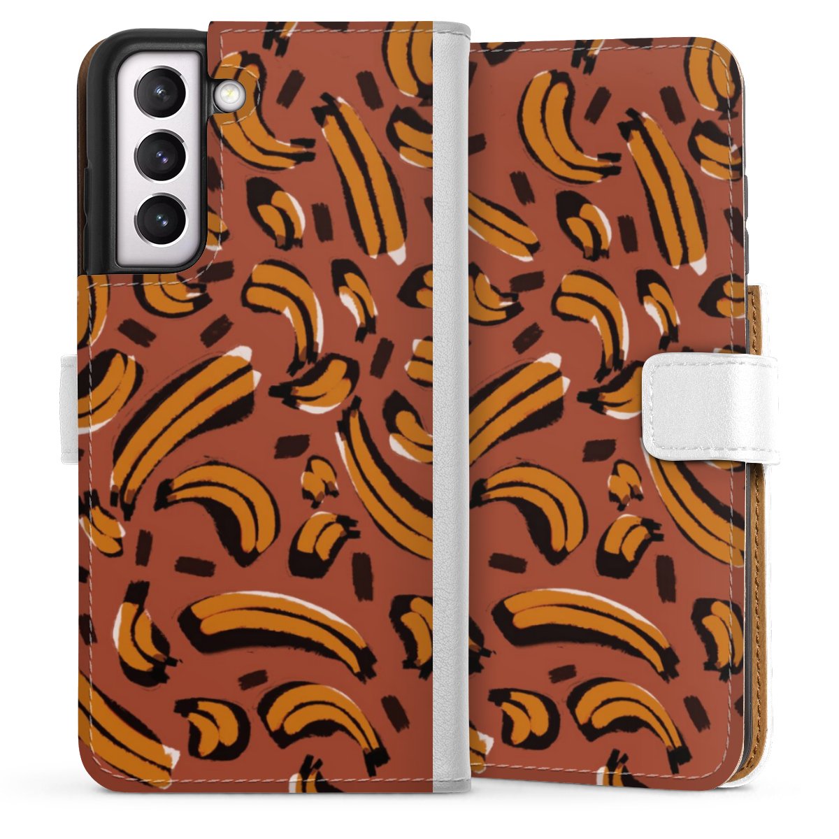 For our Sideflip Case we are using our advanced direct printing technology. The back and frontside are fully printabale, the inside of the phone bag is left unprinted. You can order the phone case without print, printed completely or also with a partial print.