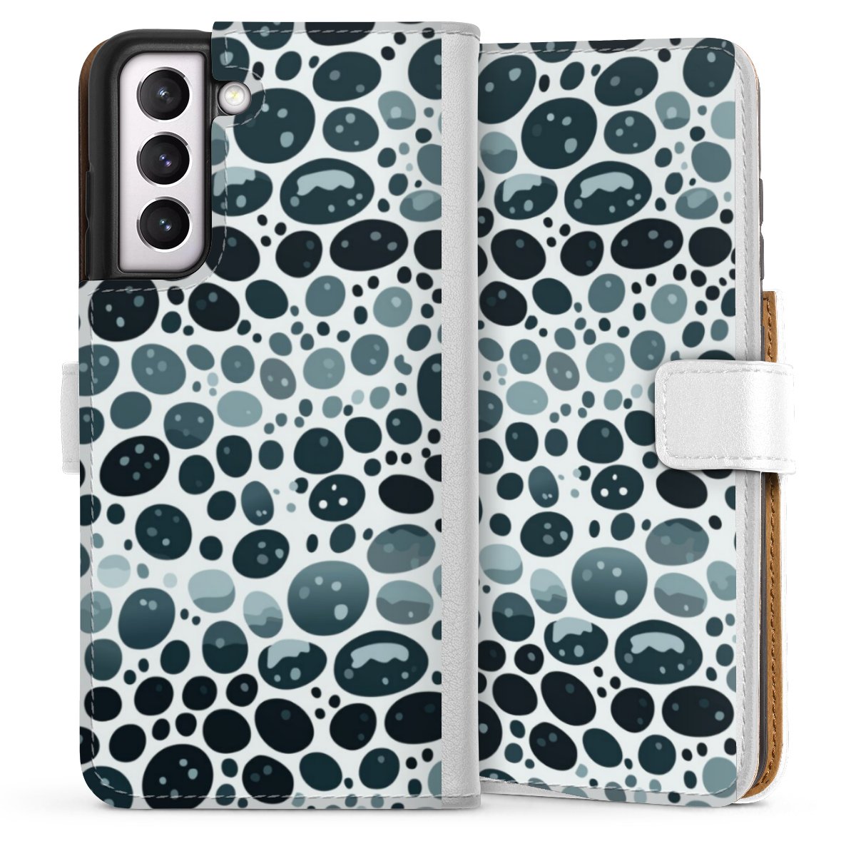 For our Sideflip Case we are using our advanced direct printing technology. The back and frontside are fully printabale, the inside of the phone bag is left unprinted. You can order the phone case without print, printed completely or also with a partial print.
