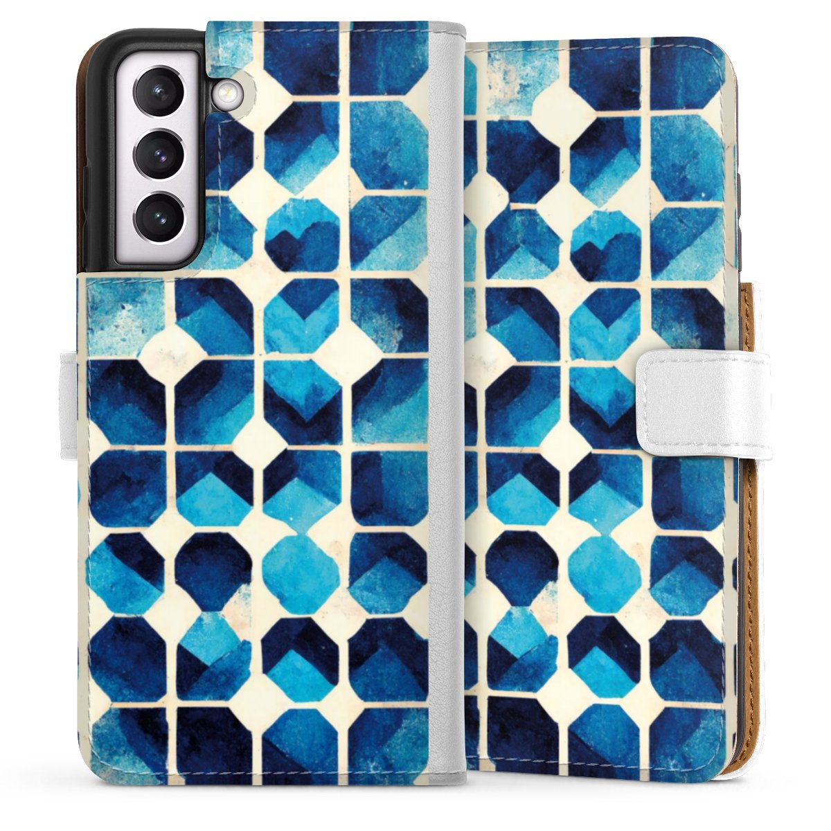 For our Sideflip Case we are using our advanced direct printing technology. The back and frontside are fully printabale, the inside of the phone bag is left unprinted. You can order the phone case without print, printed completely or also with a partial print.