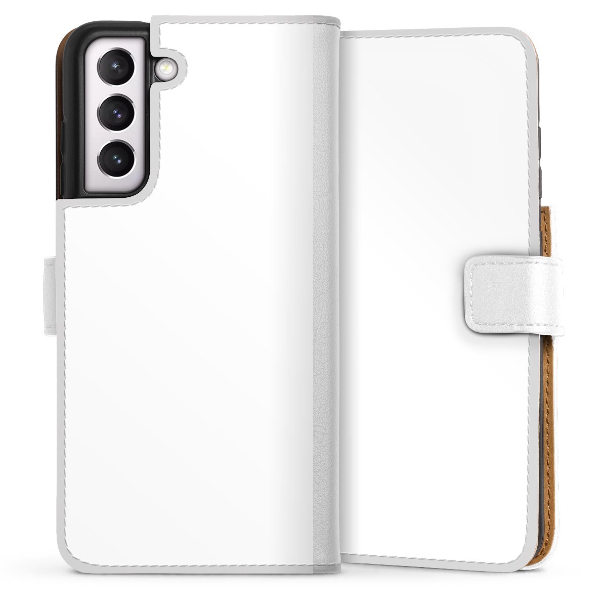 For our Sideflip Case we are using our advanced direct printing technology. The back and frontside are fully printabale, the inside of the phone bag is left unprinted. You can order the phone case without print, printed completely or also with a partial print.
