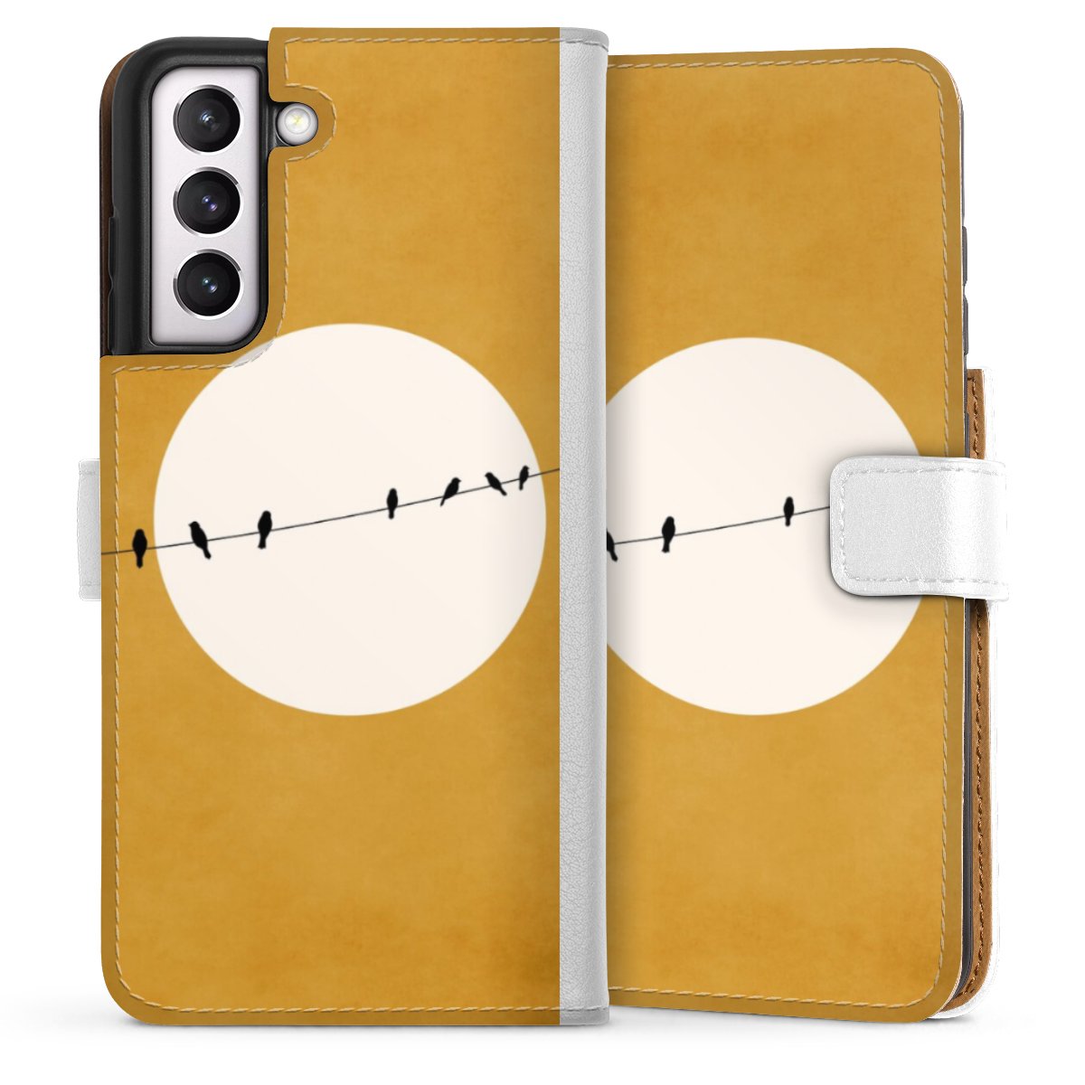 For our Sideflip Case we are using our advanced direct printing technology. The back and frontside are fully printabale, the inside of the phone bag is left unprinted. You can order the phone case without print, printed completely or also with a partial print.