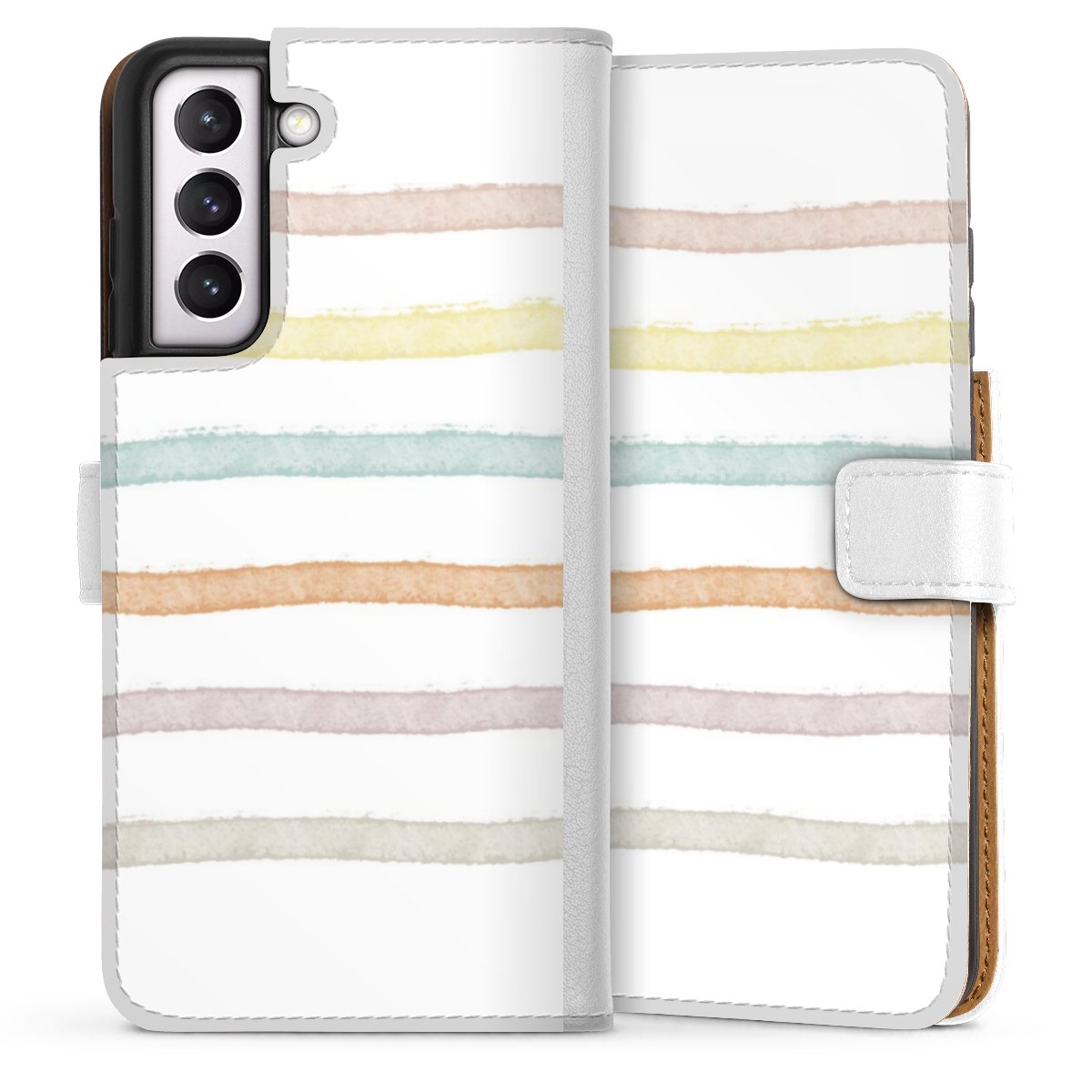 For our Sideflip Case we are using our advanced direct printing technology. The back and frontside are fully printabale, the inside of the phone bag is left unprinted. You can order the phone case without print, printed completely or also with a partial print.
