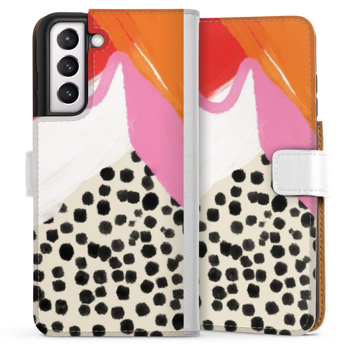 For our Sideflip Case we are using our advanced direct printing technology. The back and frontside are fully printabale, the inside of the phone bag is left unprinted. You can order the phone case without print, printed completely or also with a partial print.