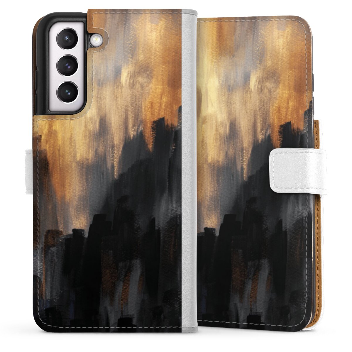 For our Sideflip Case we are using our advanced direct printing technology. The back and frontside are fully printabale, the inside of the phone bag is left unprinted. You can order the phone case without print, printed completely or also with a partial print.