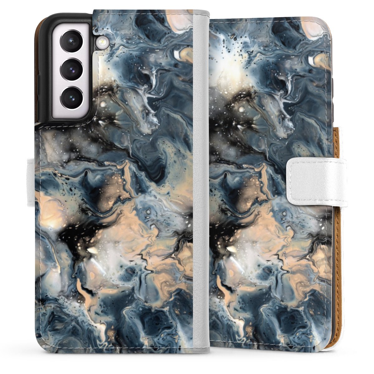 For our Sideflip Case we are using our advanced direct printing technology. The back and frontside are fully printabale, the inside of the phone bag is left unprinted. You can order the phone case without print, printed completely or also with a partial print.