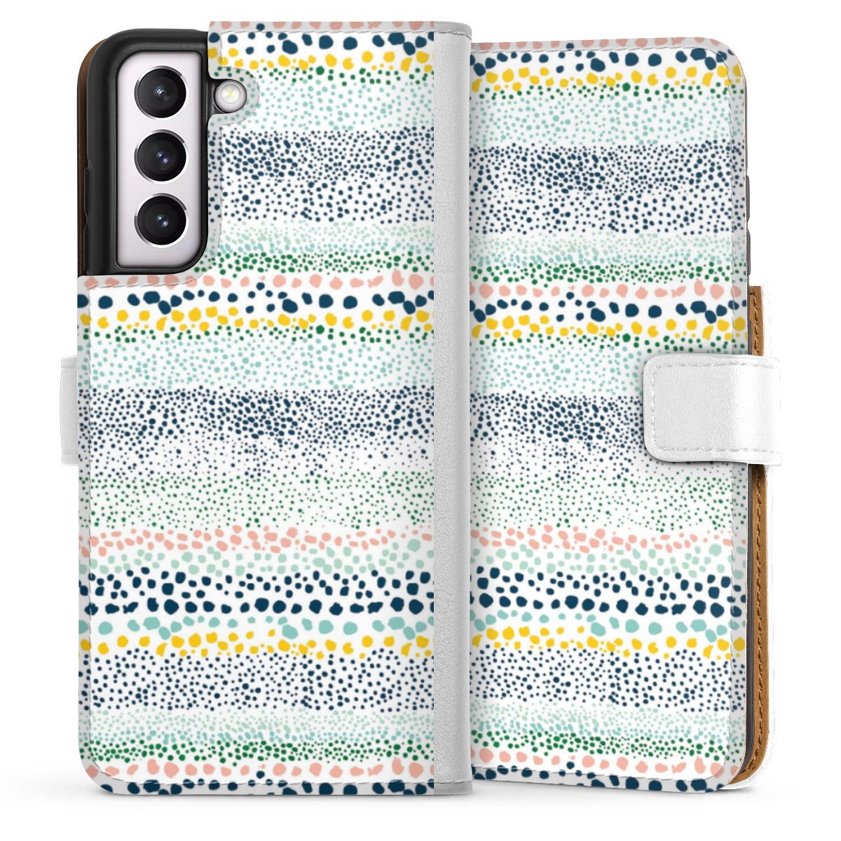 For our Sideflip Case we are using our advanced direct printing technology. The back and frontside are fully printabale, the inside of the phone bag is left unprinted. You can order the phone case without print, printed completely or also with a partial print.