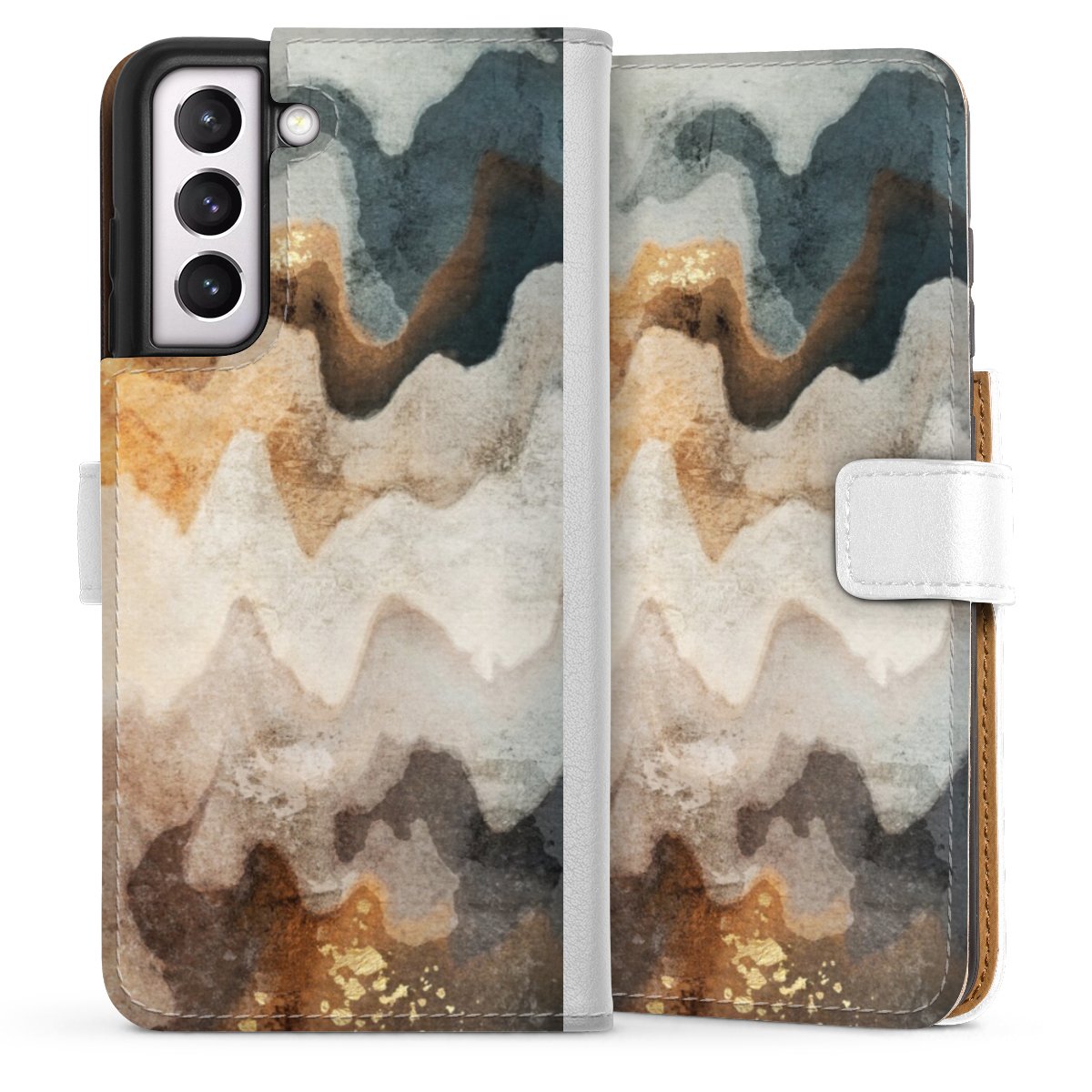 For our Sideflip Case we are using our advanced direct printing technology. The back and frontside are fully printabale, the inside of the phone bag is left unprinted. You can order the phone case without print, printed completely or also with a partial print.