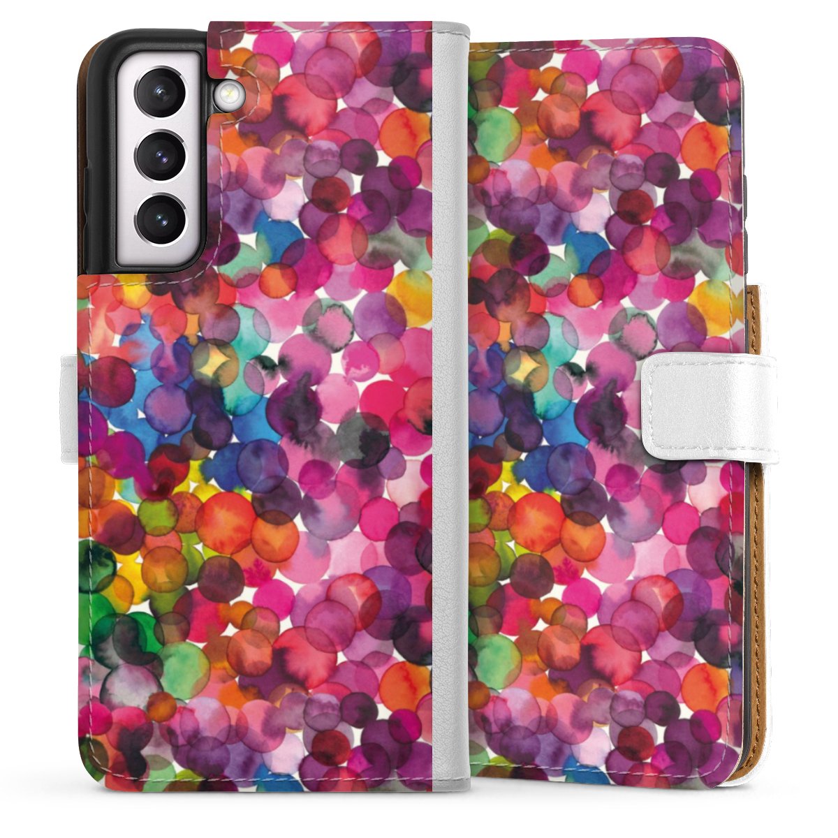 For our Sideflip Case we are using our advanced direct printing technology. The back and frontside are fully printabale, the inside of the phone bag is left unprinted. You can order the phone case without print, printed completely or also with a partial print.
