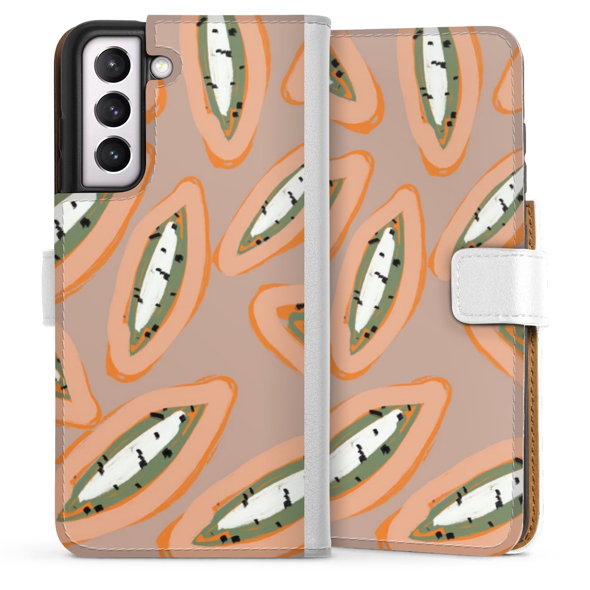 For our Sideflip Case we are using our advanced direct printing technology. The back and frontside are fully printabale, the inside of the phone bag is left unprinted. You can order the phone case without print, printed completely or also with a partial print.