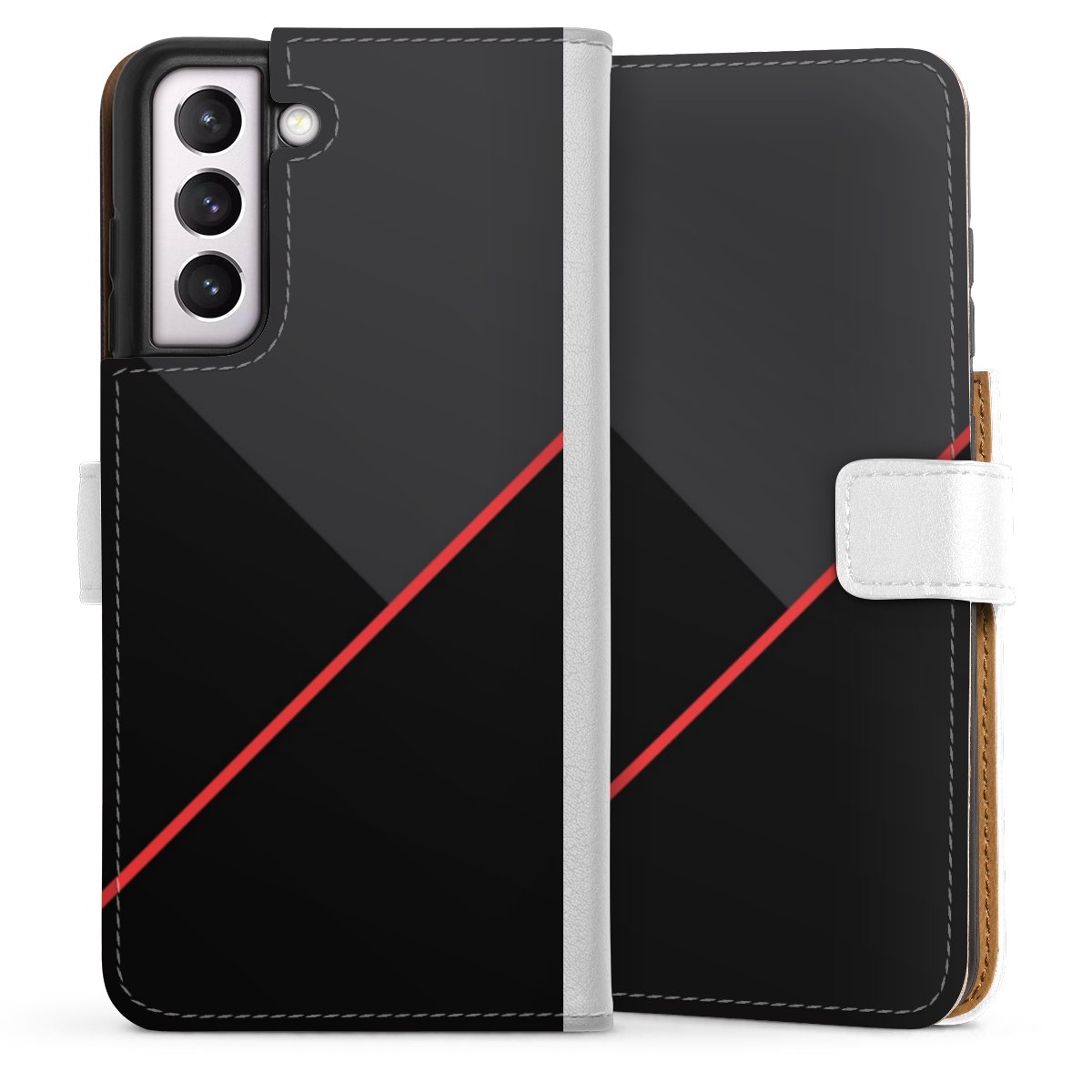 For our Sideflip Case we are using our advanced direct printing technology. The back and frontside are fully printabale, the inside of the phone bag is left unprinted. You can order the phone case without print, printed completely or also with a partial print.