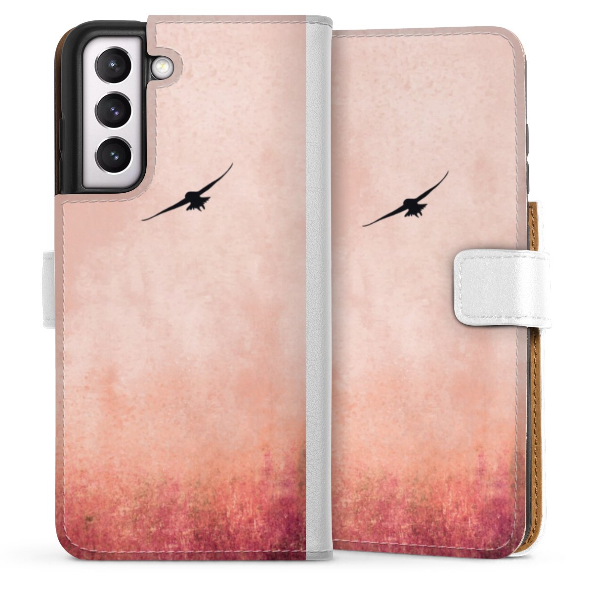 For our Sideflip Case we are using our advanced direct printing technology. The back and frontside are fully printabale, the inside of the phone bag is left unprinted. You can order the phone case without print, printed completely or also with a partial print.