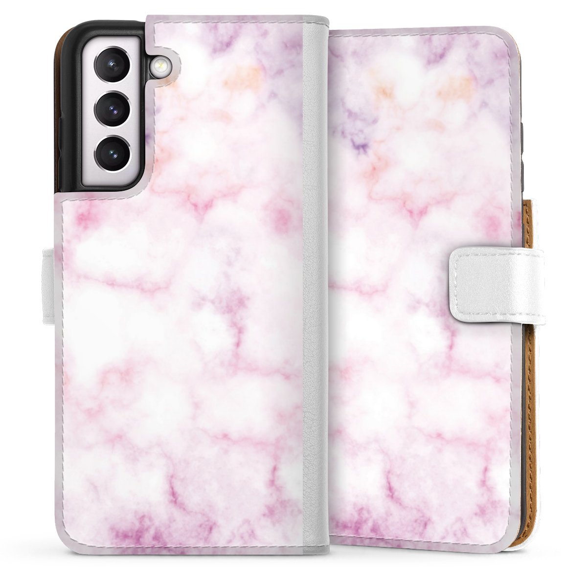For our Sideflip Case we are using our advanced direct printing technology. The back and frontside are fully printabale, the inside of the phone bag is left unprinted. You can order the phone case without print, printed completely or also with a partial print.