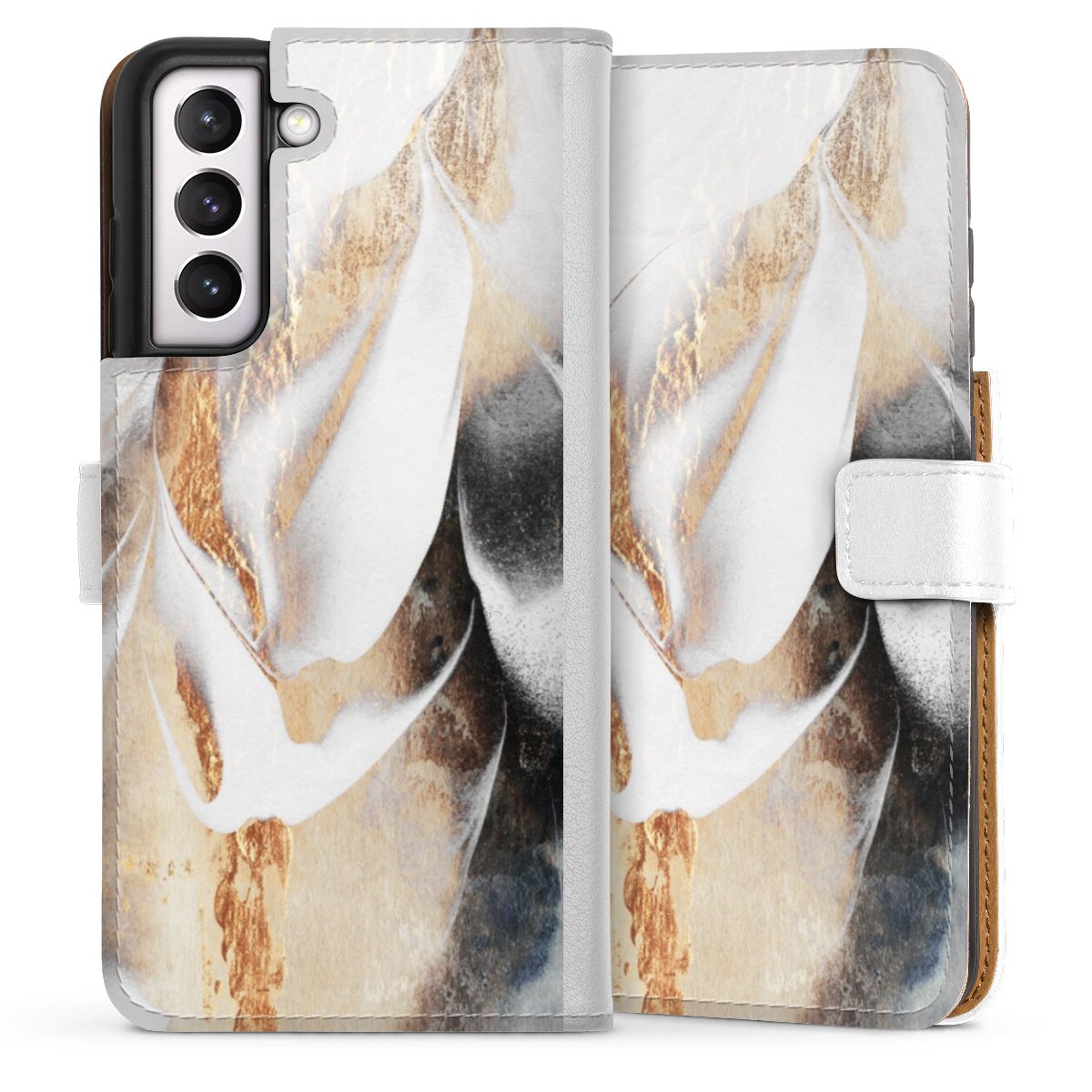 For our Sideflip Case we are using our advanced direct printing technology. The back and frontside are fully printabale, the inside of the phone bag is left unprinted. You can order the phone case without print, printed completely or also with a partial print.