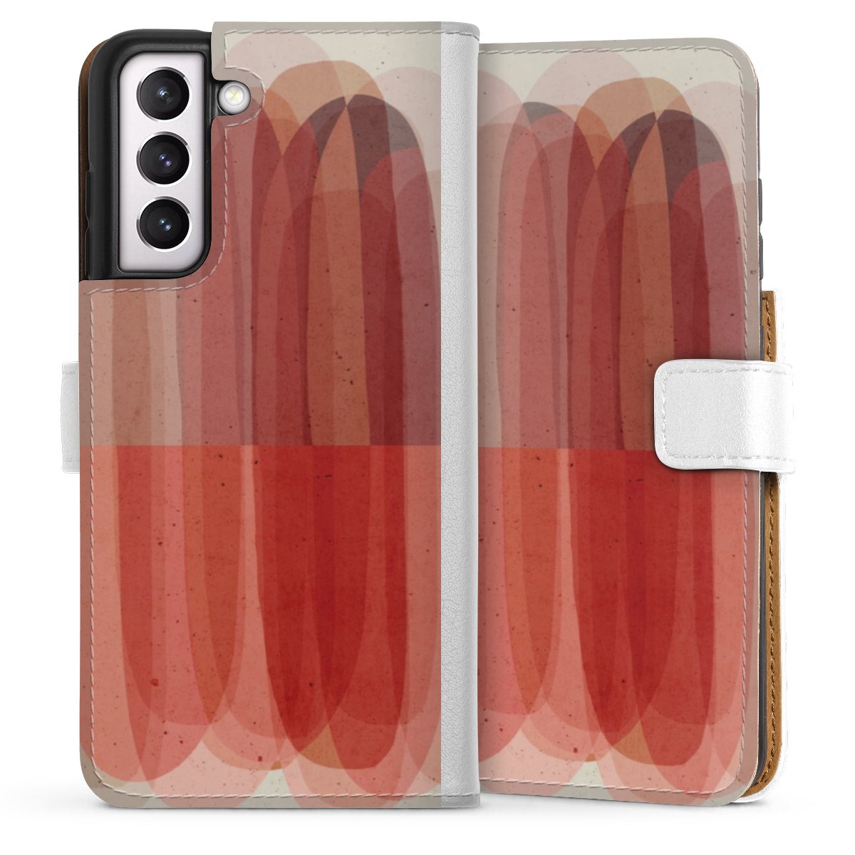 For our Sideflip Case we are using our advanced direct printing technology. The back and frontside are fully printabale, the inside of the phone bag is left unprinted. You can order the phone case without print, printed completely or also with a partial print.