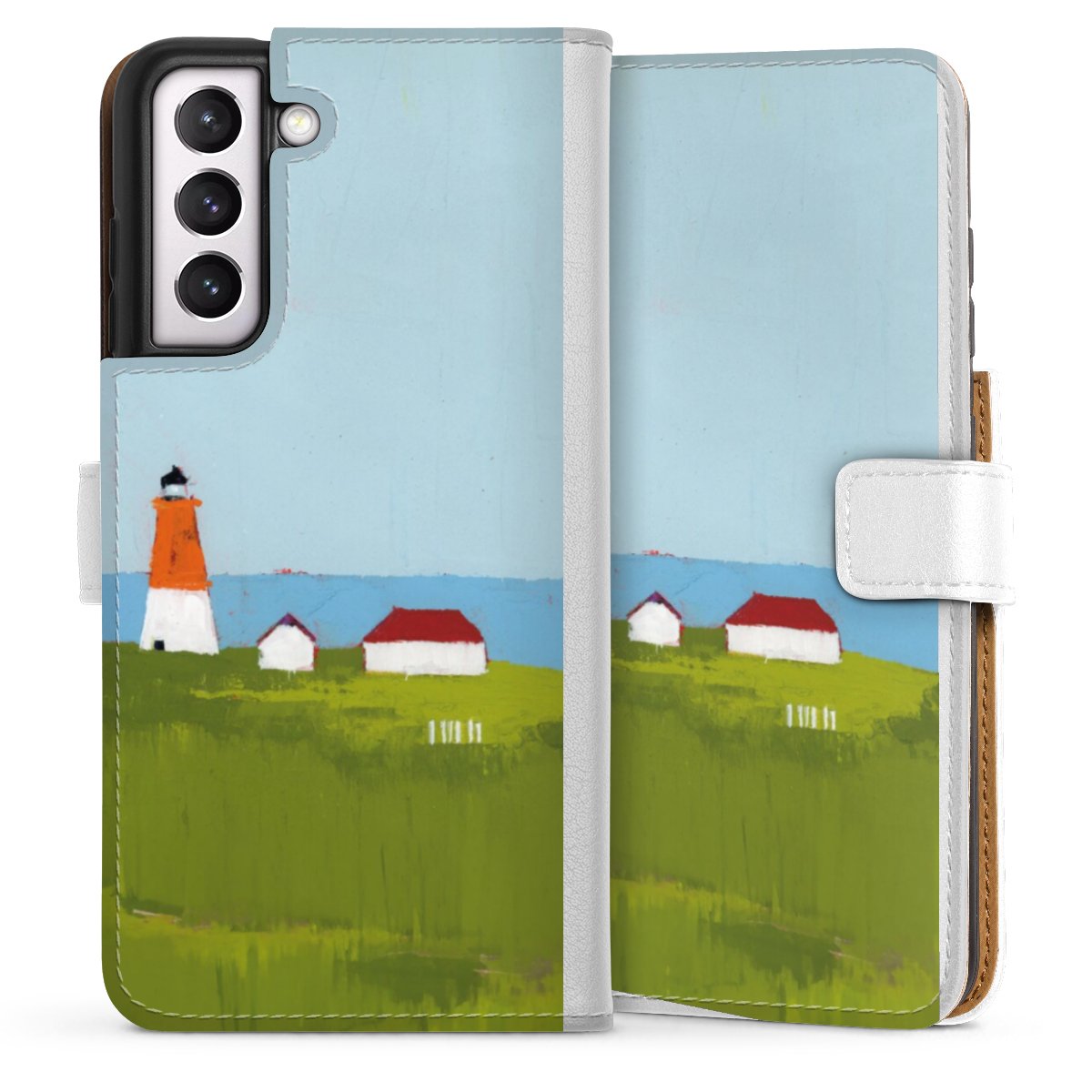 For our Sideflip Case we are using our advanced direct printing technology. The back and frontside are fully printabale, the inside of the phone bag is left unprinted. You can order the phone case without print, printed completely or also with a partial print.