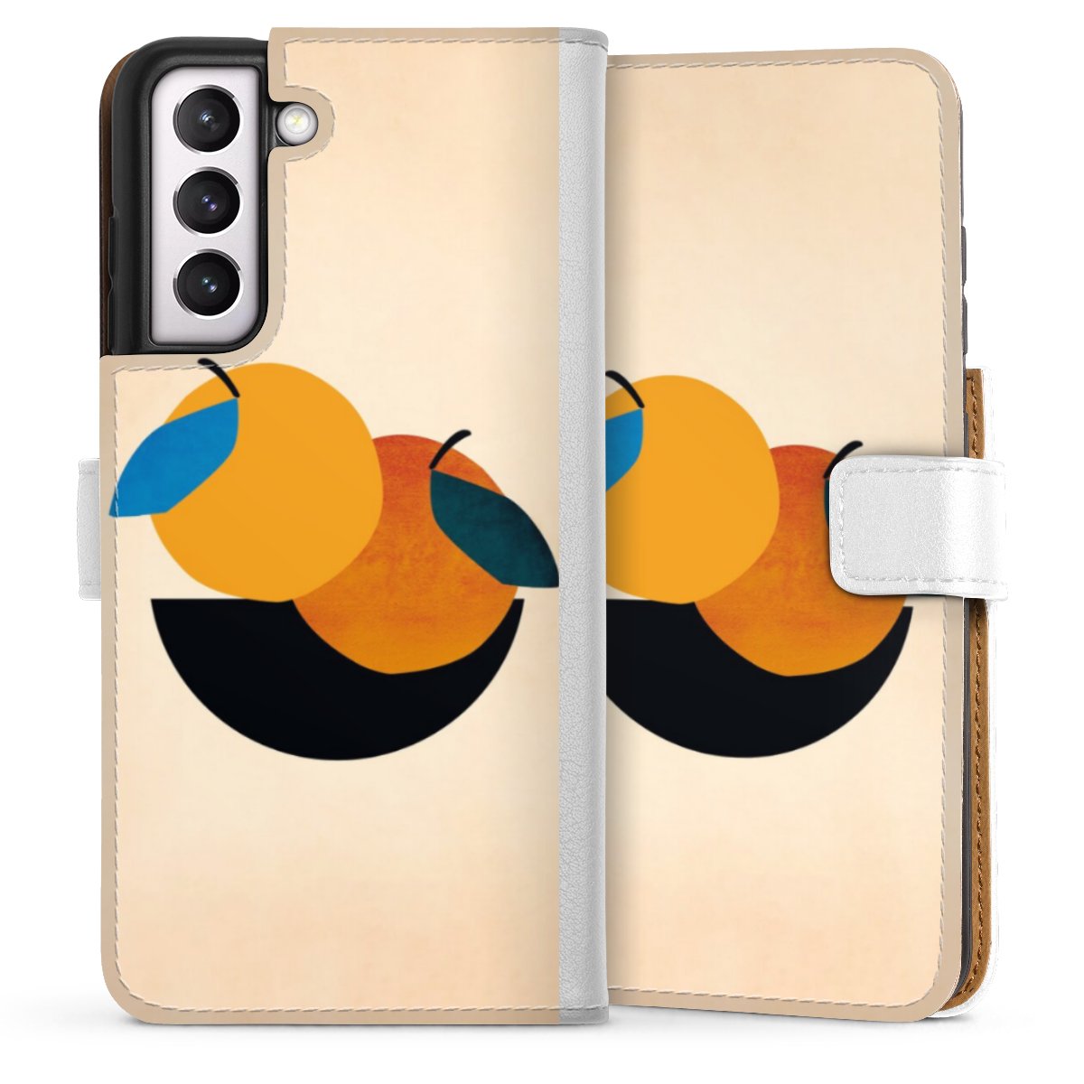 For our Sideflip Case we are using our advanced direct printing technology. The back and frontside are fully printabale, the inside of the phone bag is left unprinted. You can order the phone case without print, printed completely or also with a partial print.