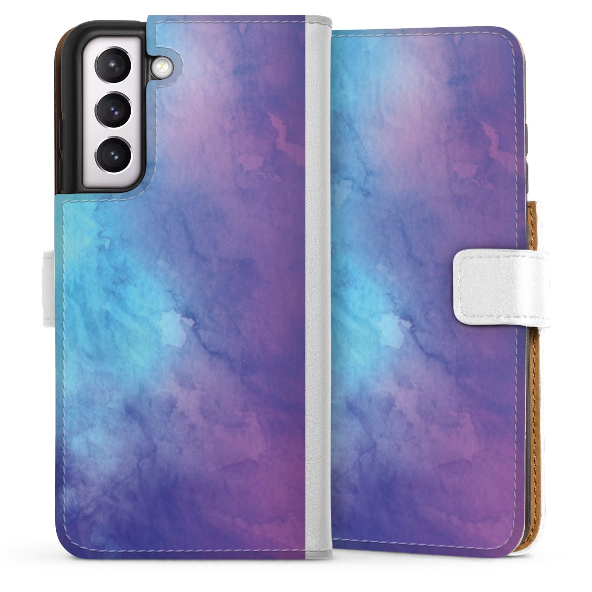 For our Sideflip Case we are using our advanced direct printing technology. The back and frontside are fully printabale, the inside of the phone bag is left unprinted. You can order the phone case without print, printed completely or also with a partial print.