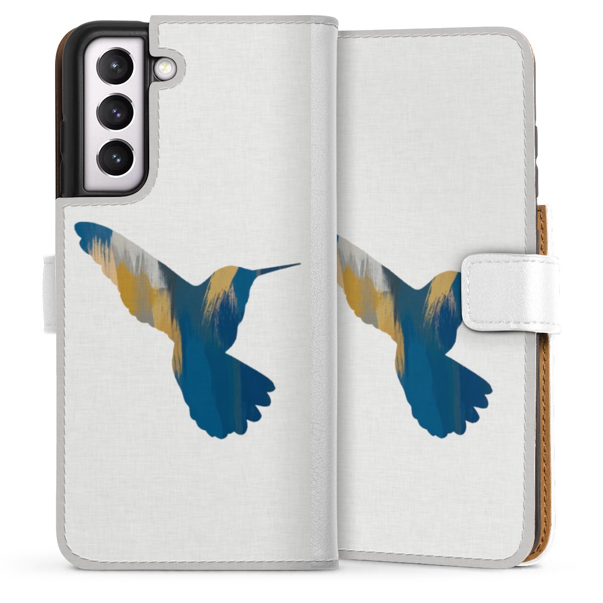 For our Sideflip Case we are using our advanced direct printing technology. The back and frontside are fully printabale, the inside of the phone bag is left unprinted. You can order the phone case without print, printed completely or also with a partial print.