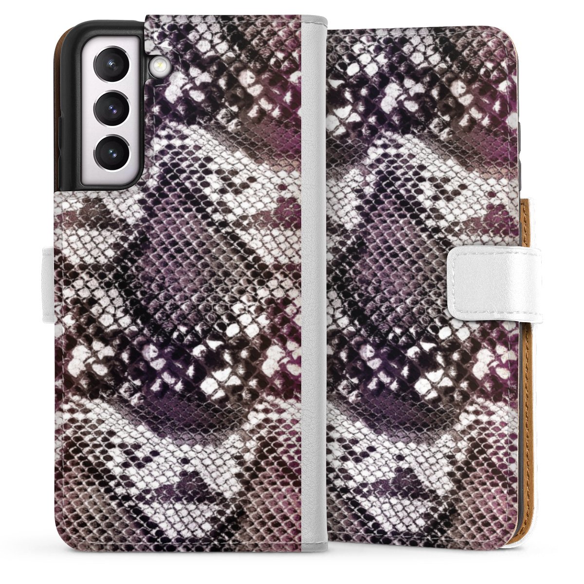 For our Sideflip Case we are using our advanced direct printing technology. The back and frontside are fully printabale, the inside of the phone bag is left unprinted. You can order the phone case without print, printed completely or also with a partial print.