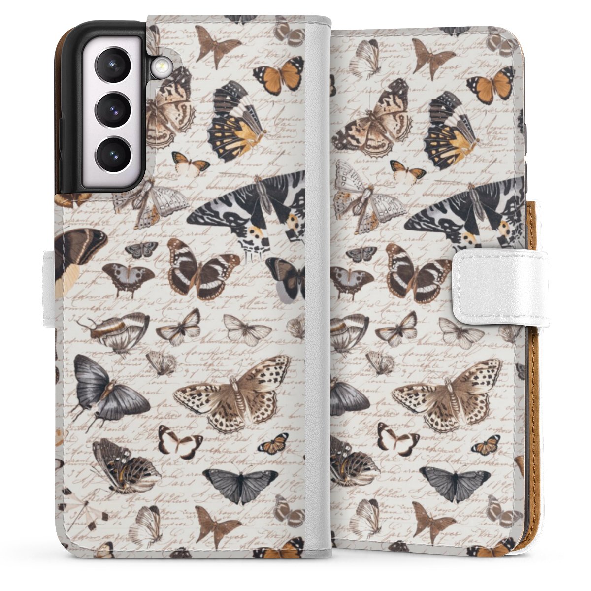 For our Sideflip Case we are using our advanced direct printing technology. The back and frontside are fully printabale, the inside of the phone bag is left unprinted. You can order the phone case without print, printed completely or also with a partial print.