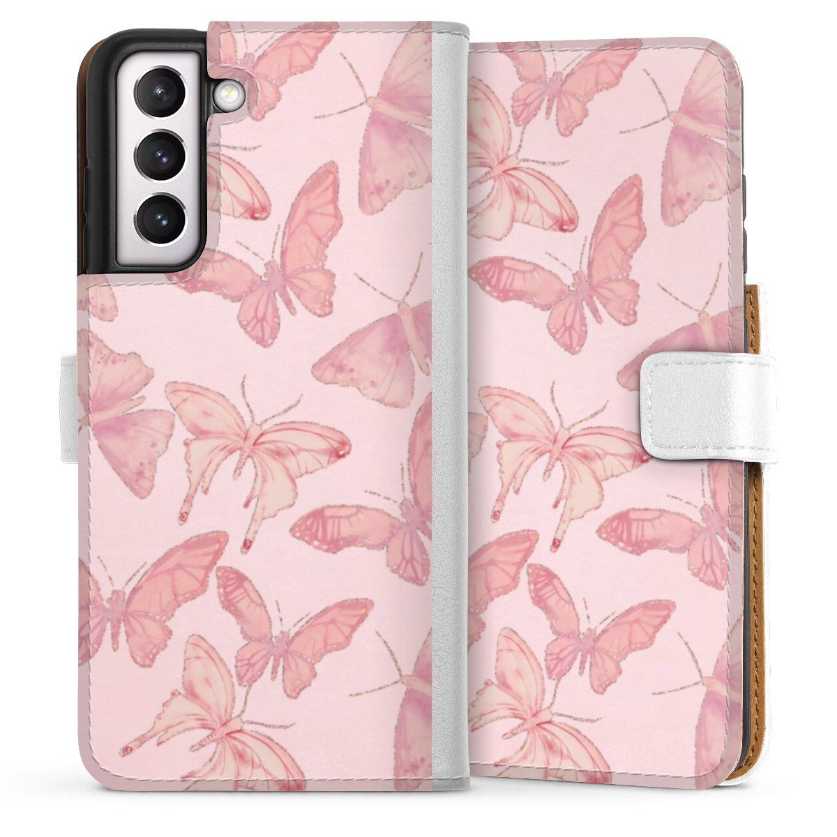 For our Sideflip Case we are using our advanced direct printing technology. The back and frontside are fully printabale, the inside of the phone bag is left unprinted. You can order the phone case without print, printed completely or also with a partial print.
