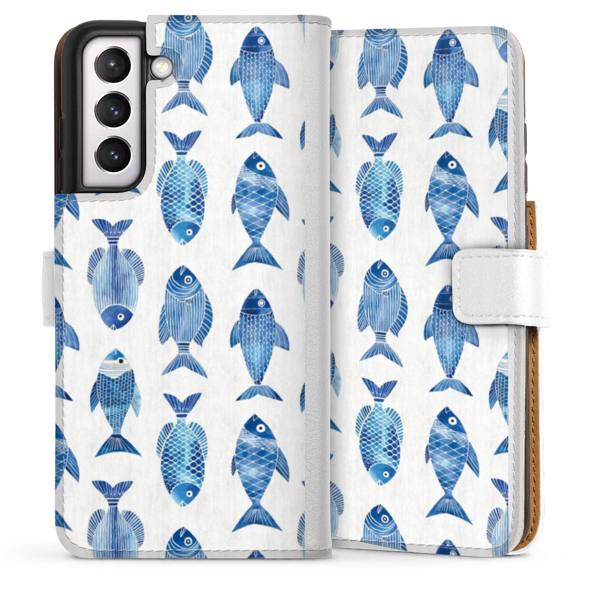 For our Sideflip Case we are using our advanced direct printing technology. The back and frontside are fully printabale, the inside of the phone bag is left unprinted. You can order the phone case without print, printed completely or also with a partial print.