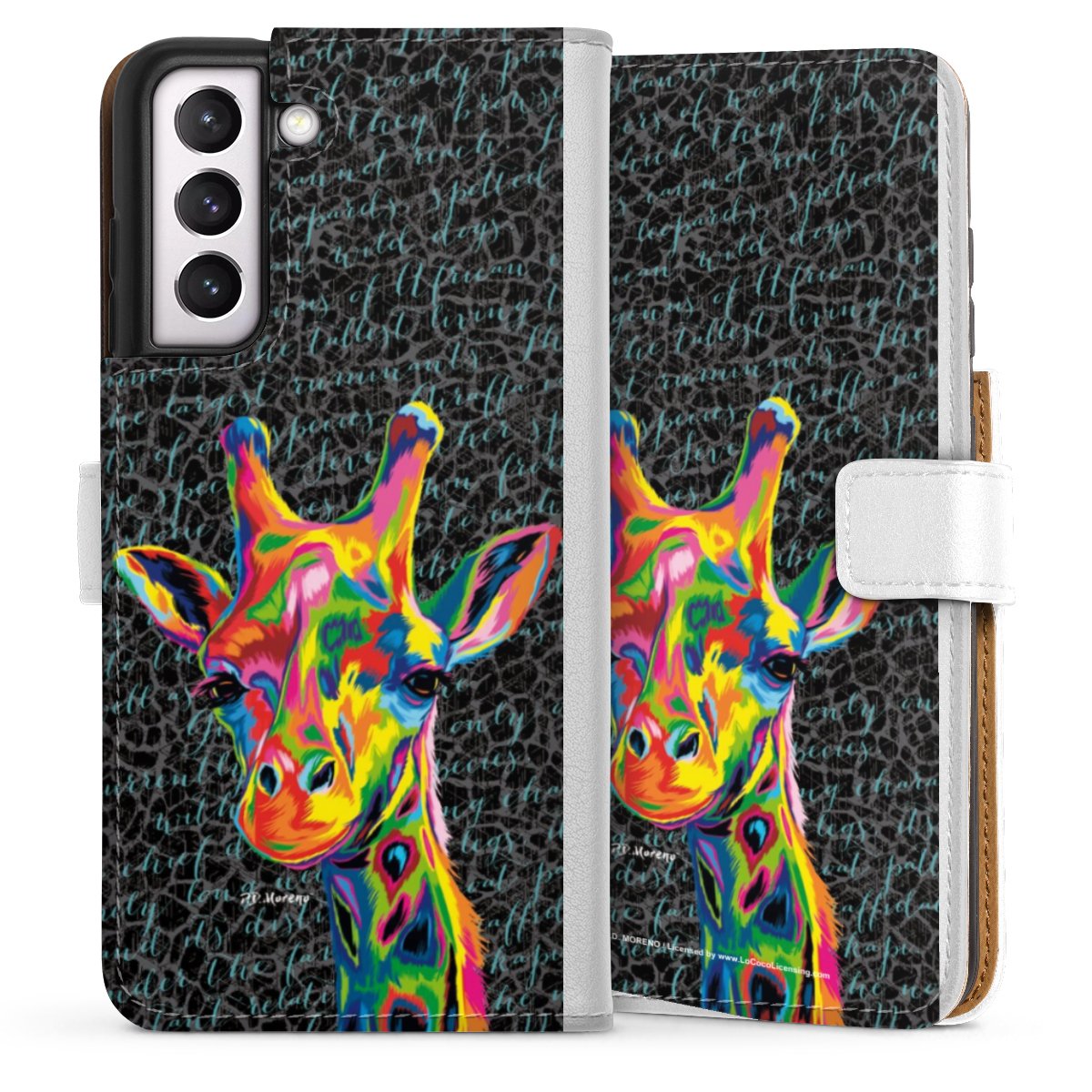 For our Sideflip Case we are using our advanced direct printing technology. The back and frontside are fully printabale, the inside of the phone bag is left unprinted. You can order the phone case without print, printed completely or also with a partial print.