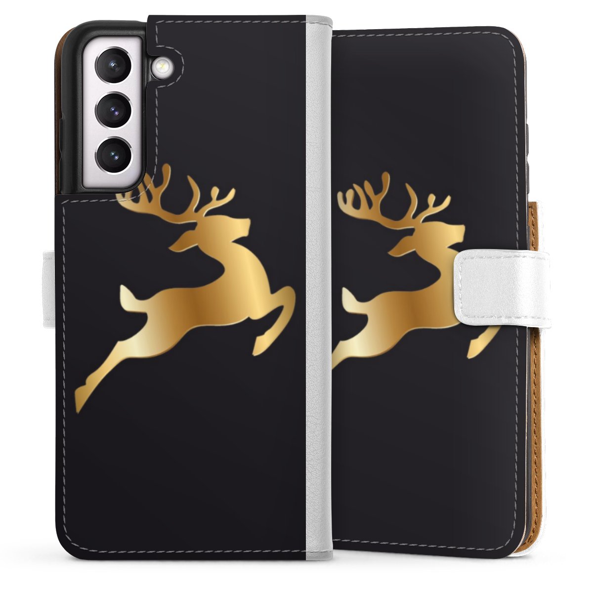 For our Sideflip Case we are using our advanced direct printing technology. The back and frontside are fully printabale, the inside of the phone bag is left unprinted. You can order the phone case without print, printed completely or also with a partial print.