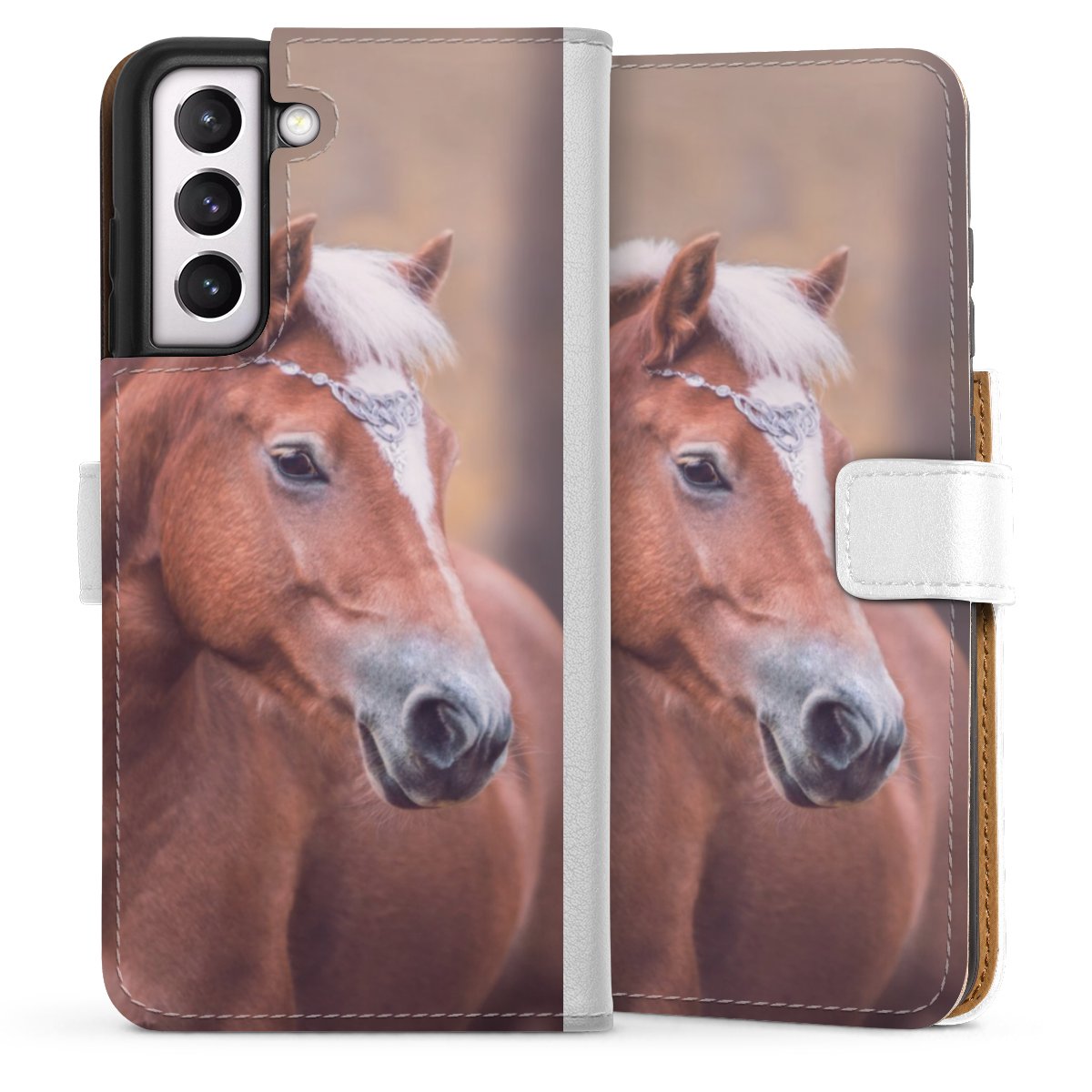 For our Sideflip Case we are using our advanced direct printing technology. The back and frontside are fully printabale, the inside of the phone bag is left unprinted. You can order the phone case without print, printed completely or also with a partial print.
