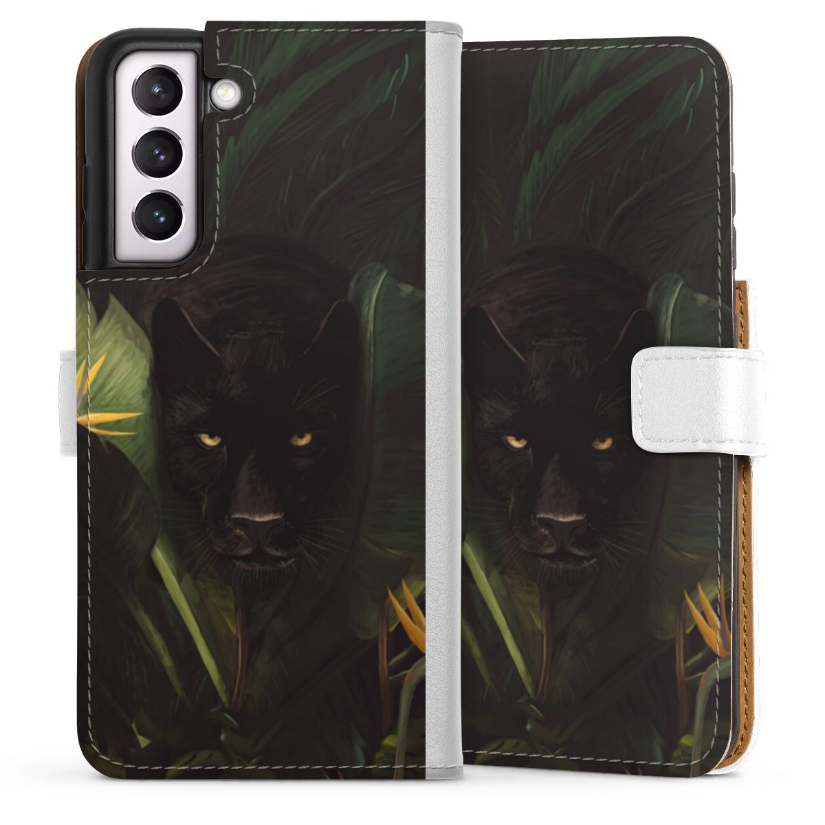 For our Sideflip Case we are using our advanced direct printing technology. The back and frontside are fully printabale, the inside of the phone bag is left unprinted. You can order the phone case without print, printed completely or also with a partial print.