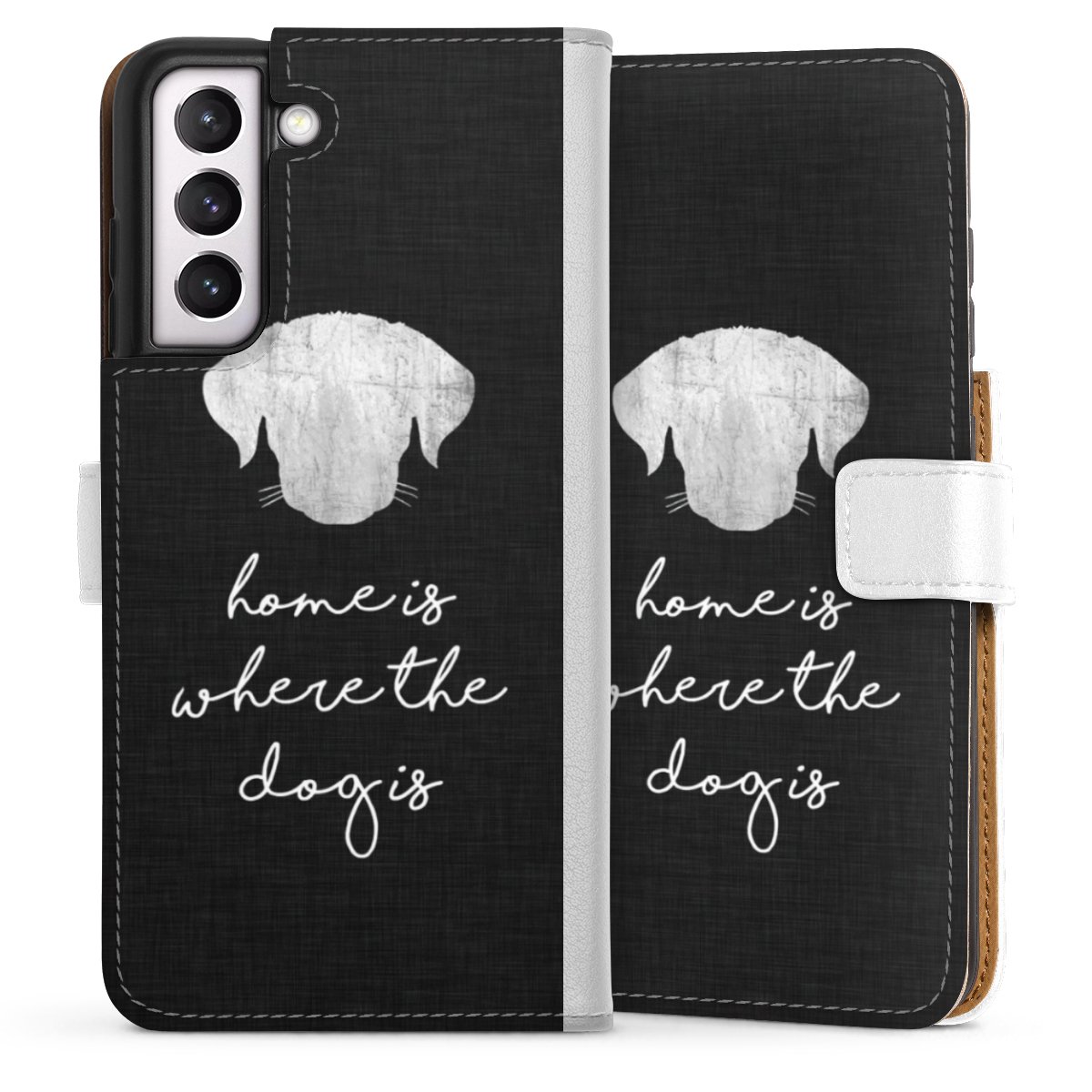 For our Sideflip Case we are using our advanced direct printing technology. The back and frontside are fully printabale, the inside of the phone bag is left unprinted. You can order the phone case without print, printed completely or also with a partial print.