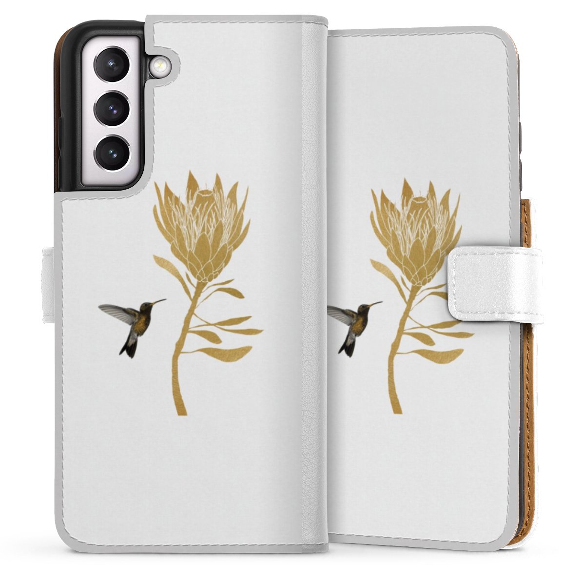 For our Sideflip Case we are using our advanced direct printing technology. The back and frontside are fully printabale, the inside of the phone bag is left unprinted. You can order the phone case without print, printed completely or also with a partial print.