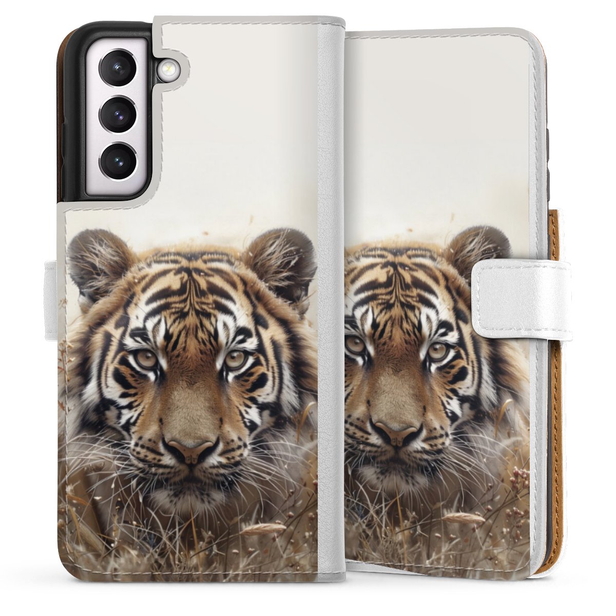 For our Sideflip Case we are using our advanced direct printing technology. The back and frontside are fully printabale, the inside of the phone bag is left unprinted. You can order the phone case without print, printed completely or also with a partial print.