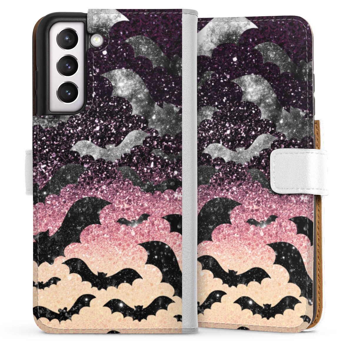 For our Sideflip Case we are using our advanced direct printing technology. The back and frontside are fully printabale, the inside of the phone bag is left unprinted. You can order the phone case without print, printed completely or also with a partial print.