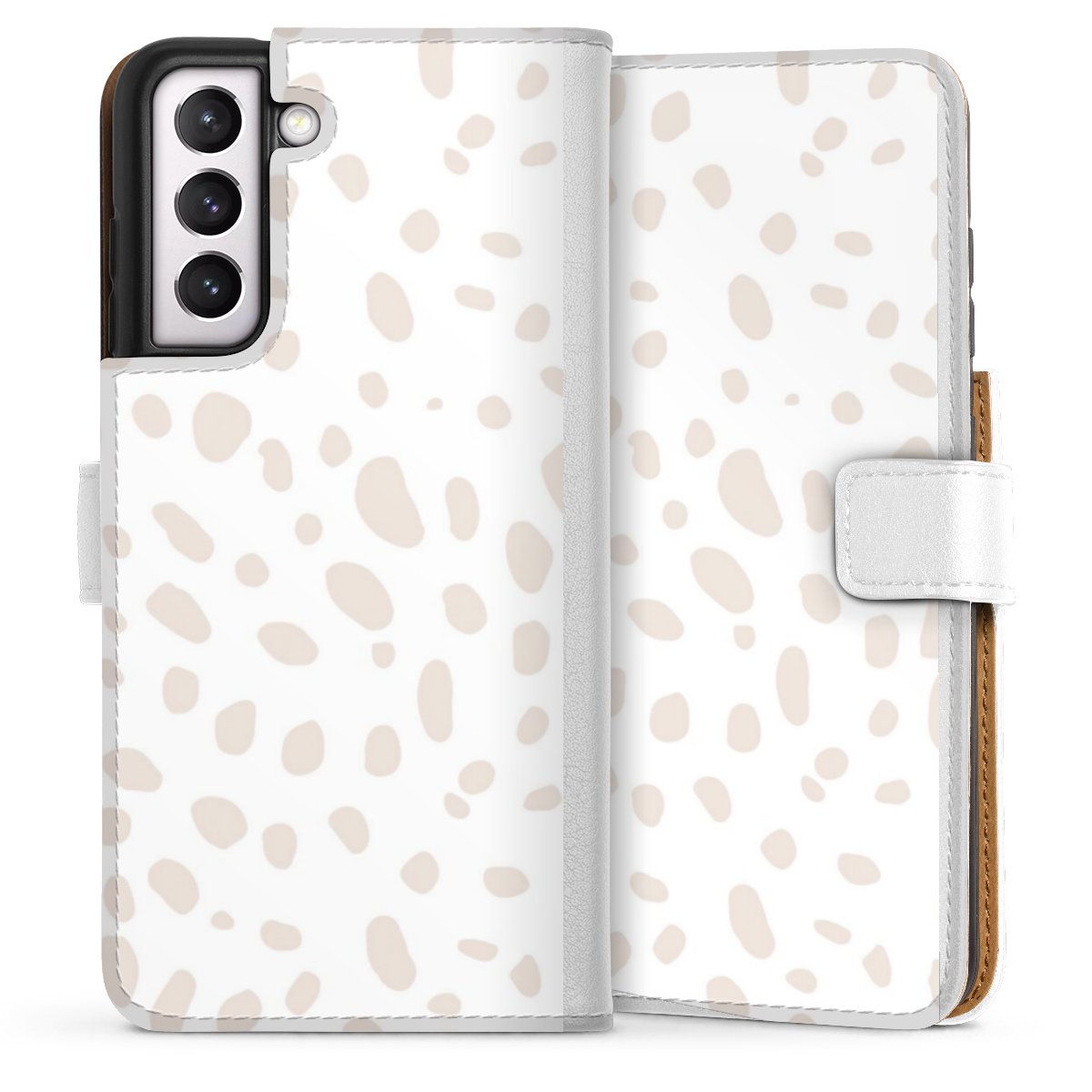 For our Sideflip Case we are using our advanced direct printing technology. The back and frontside are fully printabale, the inside of the phone bag is left unprinted. You can order the phone case without print, printed completely or also with a partial print.